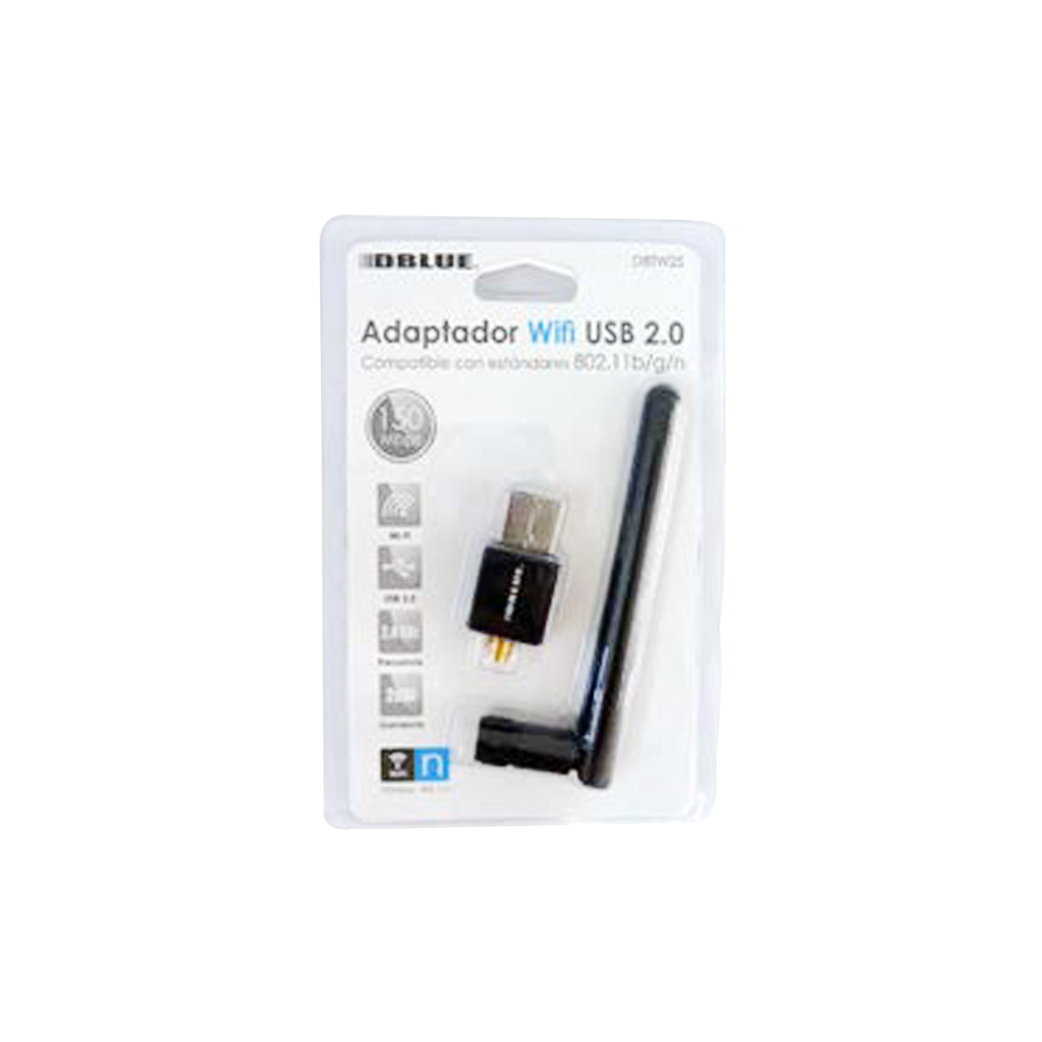 ADAPTADOR DBLUE MINI LAN WIFI CON ANTENA DESMONTABLE, 150 MBPS, USB 2.0, CONECTA PC A RED INALAMBRICA.