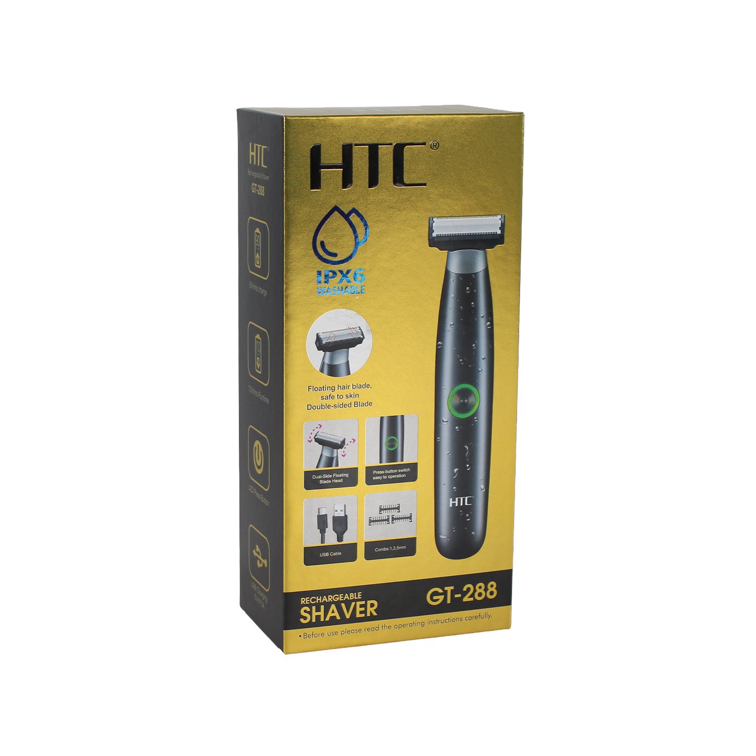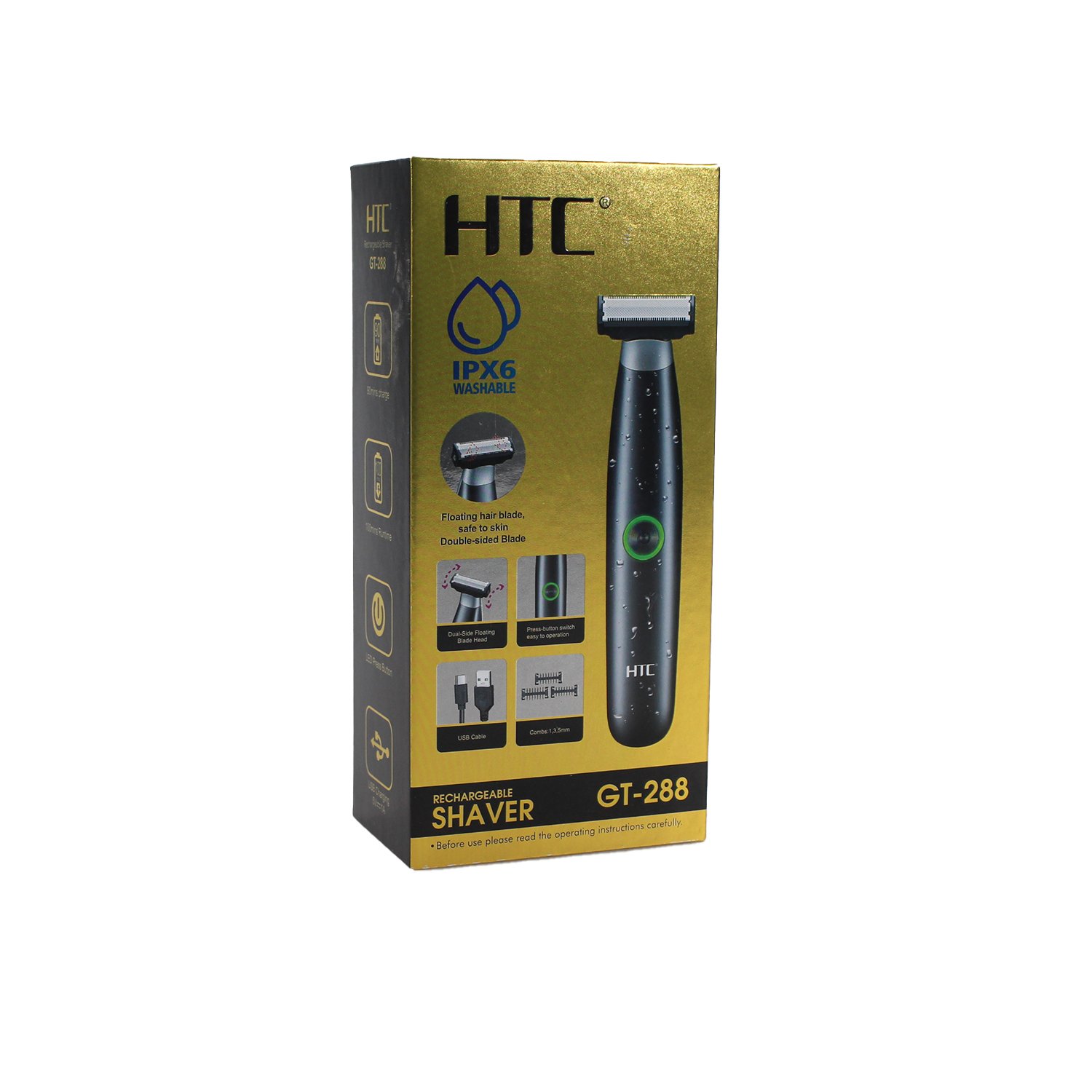 La afeitadora GT-288 es la solución perfecta para quienes buscan un afeitado preciso, rápido y sin complicaciones. Su cuchilla flotante de doble cara permite afeitar en ambas direcciones, facilitando el acceso a zonas difíciles con un contacto suave que protege la piel. Gracias a su resistencia al agua con certificación IPX6, puede utilizarse con total seguridad incluso en ambientes húmedos y es completamente lavable. Equipada con batería de litio de 600 mAh y carga rápida en solo 1.5 horas, ofrece hasta 100 minutos de funcionamiento continuo. Incluye peines guía de distintos tamaños y accesorios esenciales, como cepillo de limpieza y aceite lubricante, todo lo que necesita para un mantenimiento óptimo