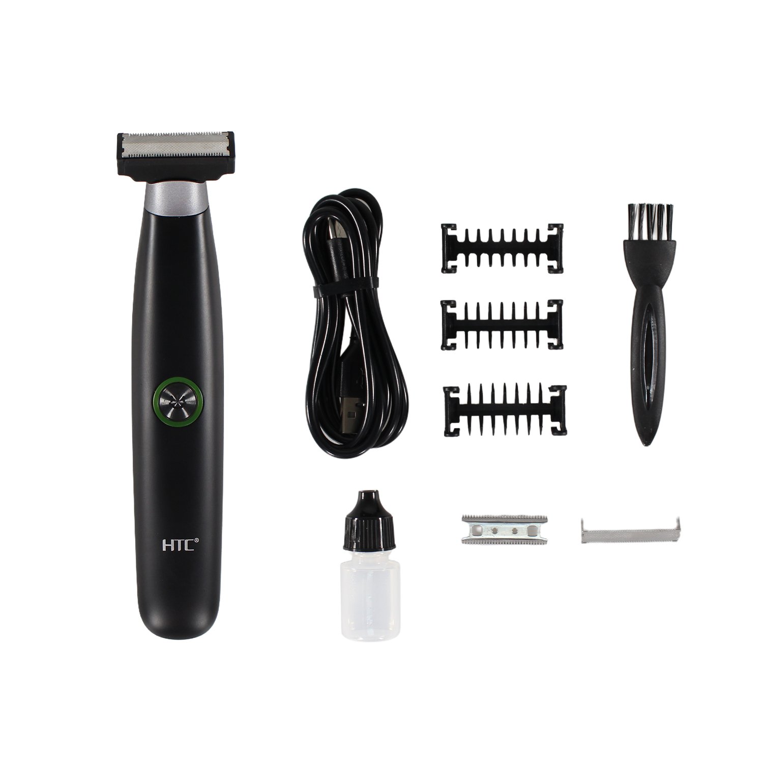 – Incluye: 3 peines guía (1/3/5 mm), 1 cepillo de limpieza, 1 frasco de aceite lubricante, 1 cable USB de carga