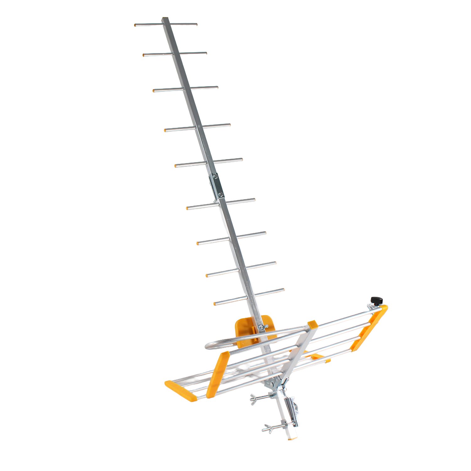 A nivel de rendimiento, su diseño estructural permite una ganancia de señal de 10 a 13 dB, lo cual es ideal para captar frecuencias en zonas urbanas y semi-rurales con gran nitidez y estabilidad. El hecho de que el empaque ya incluya las abrazaderas de fijación y un manual de instalación detallado es un excelente argumento de venta, ya que reduce la fricción de compra y le entrega al usuario final las piezas mecánicas necesarias para un montaje rápido y seguro en techos o mástiles. Es un producto altamente rentable que, además, fomenta la venta cruzada directa en el piso de ventas.