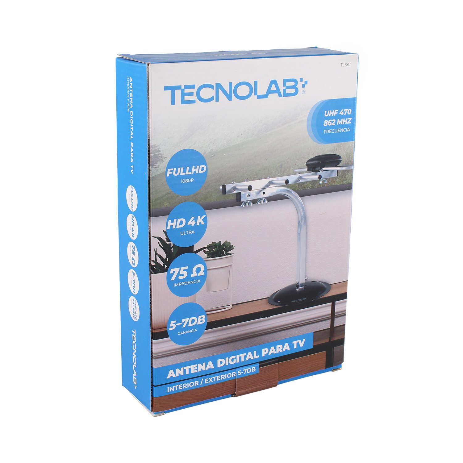Mejora la calidad de tu señal televisiva con la antena digital Tecnolab para TV, ideal tanto para interiores como exteriores.
