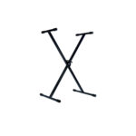 Soporte en X simple, altura regulable, metal, gomas antideslizantes, color negro, fácil uso