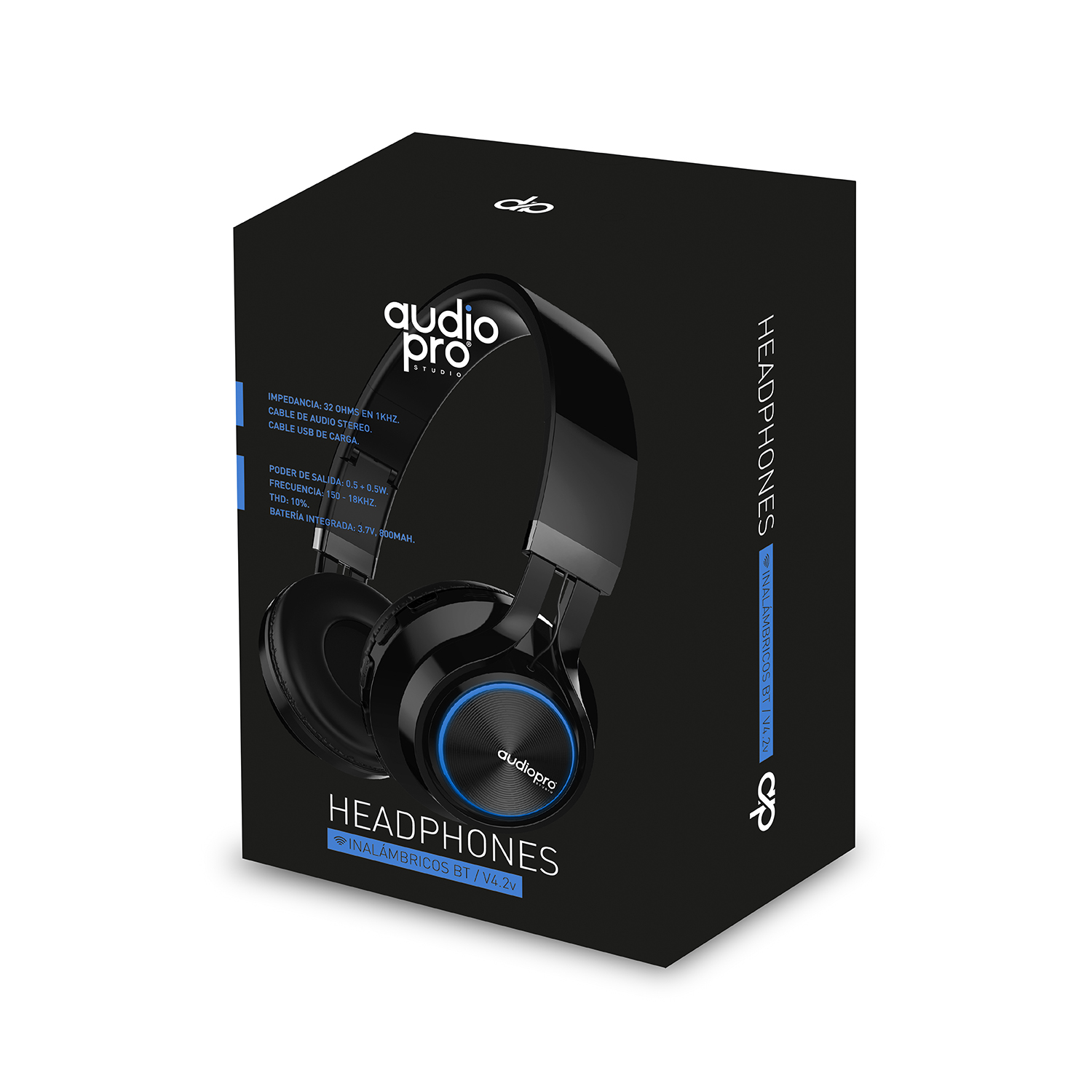Audífono headband bluetooth con bt/fm/tf/aux, azul. incluye TF card, entrada 3.5 mm, radio FM y manos libres. batería recargable con hasta 5 horas de música.