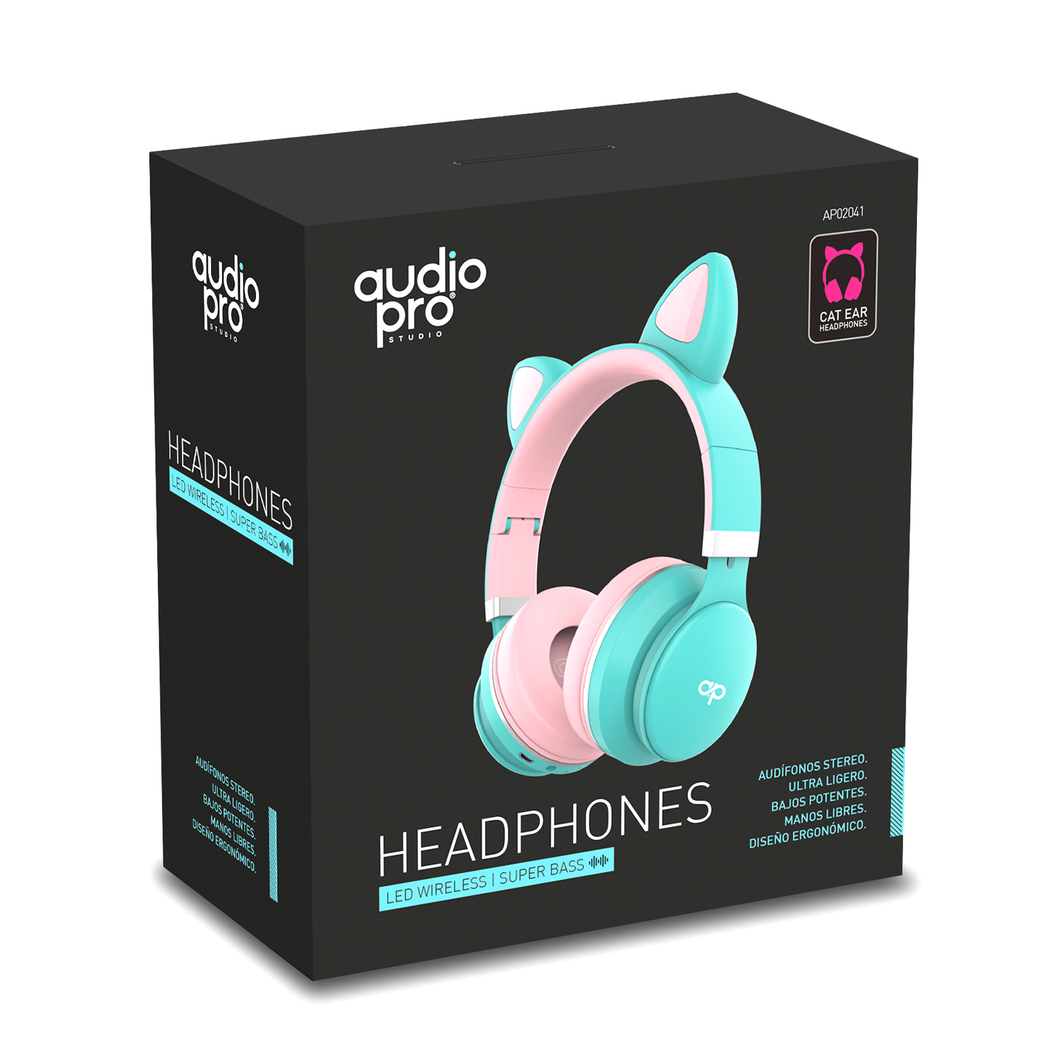 AUDIFONO HEADBAND OREJAS DE GATO BT CON LUZ LED TURQUESA