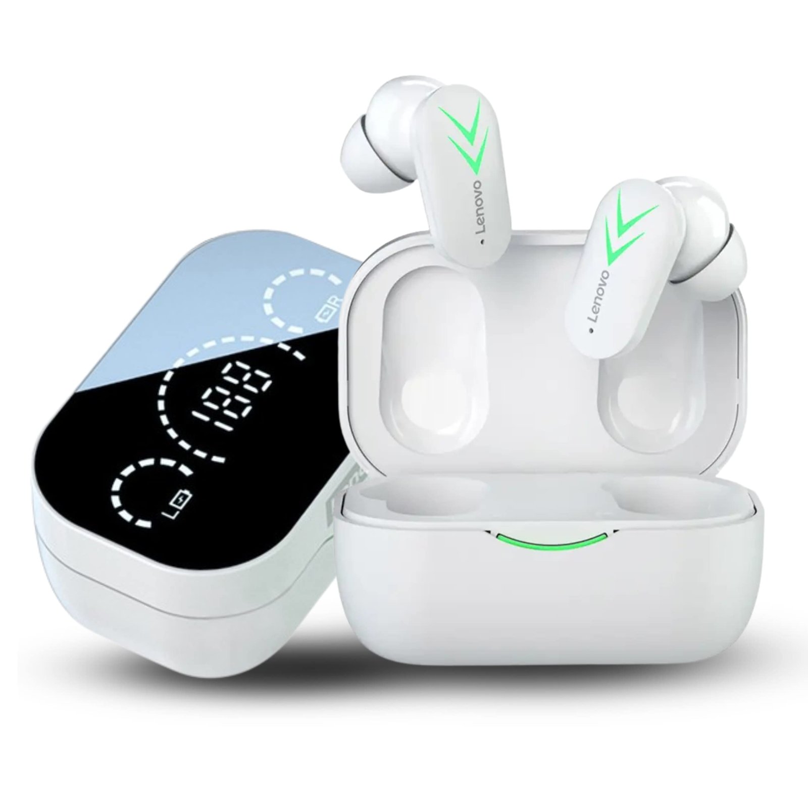 Auriculares lenovo con baja latencia y control táctil, ofrecen sonido estereo.