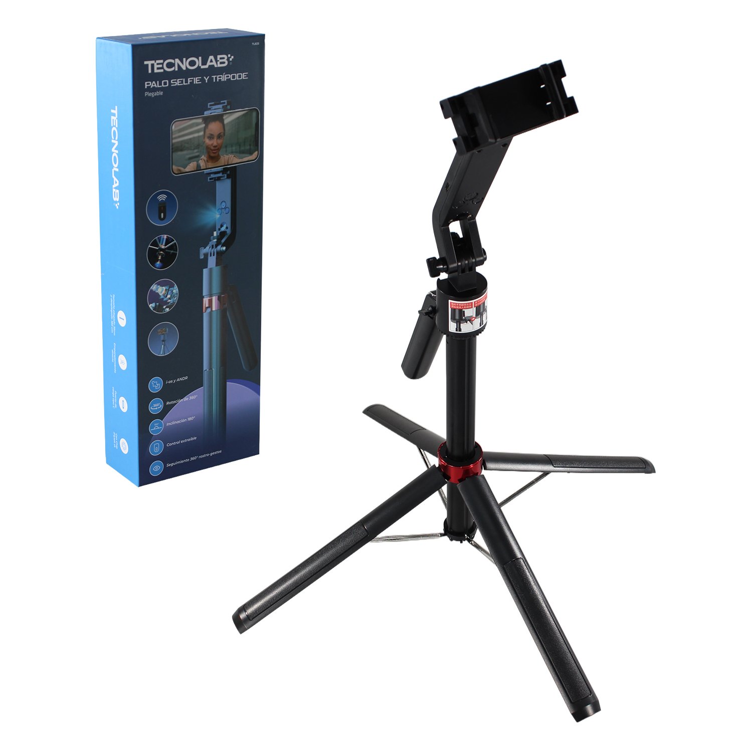 El diseño plegable con función trípode ofrece estabilidad y versatilidad en distintos escenarios, desde grabaciones en interiores hasta sesiones al aire libre. La rotación de 360° amplía las posibilidades de encuadre, facilitando tomas verticales y horizontales con total libertad de movimiento.