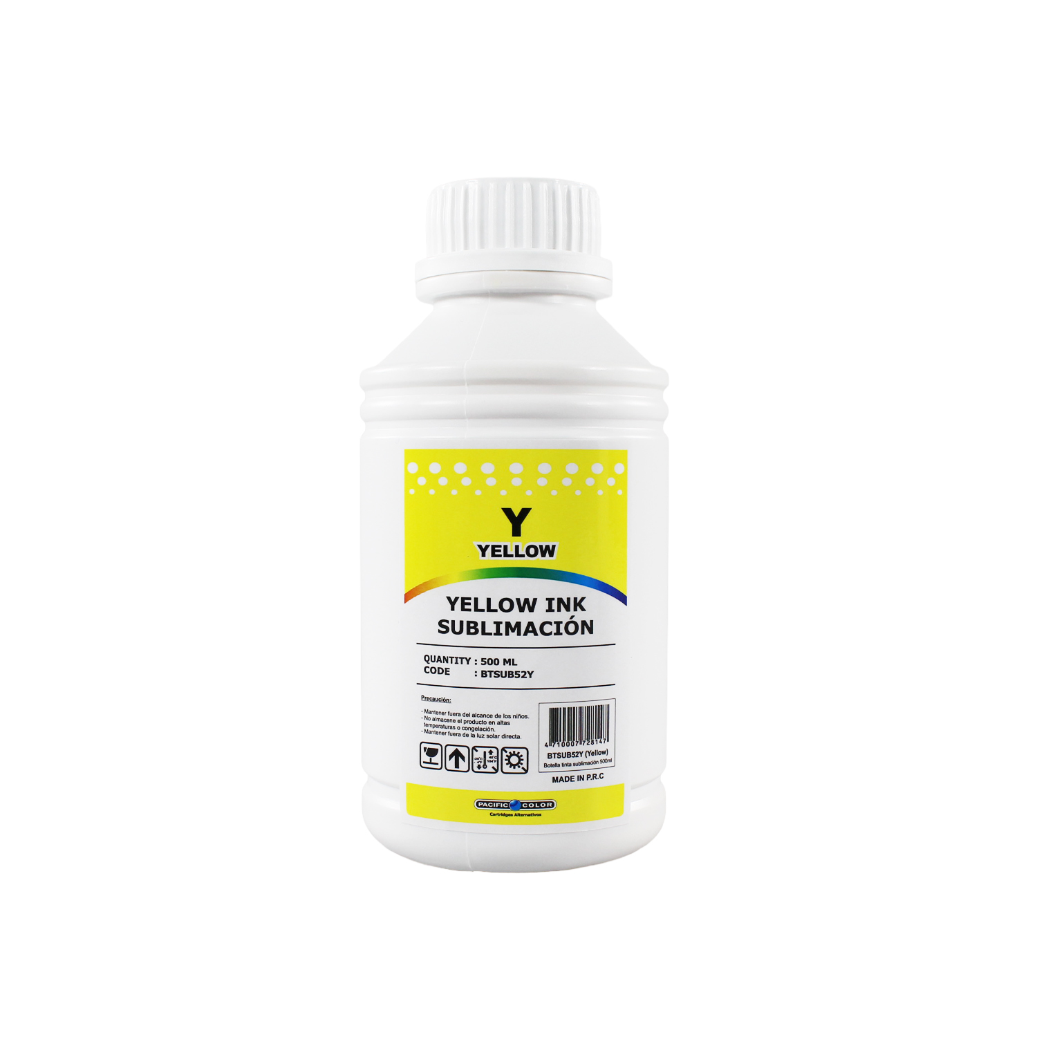Tinta de sublimación para impresoras epson con capacidad de 500 ml, disponible en color amarillo.