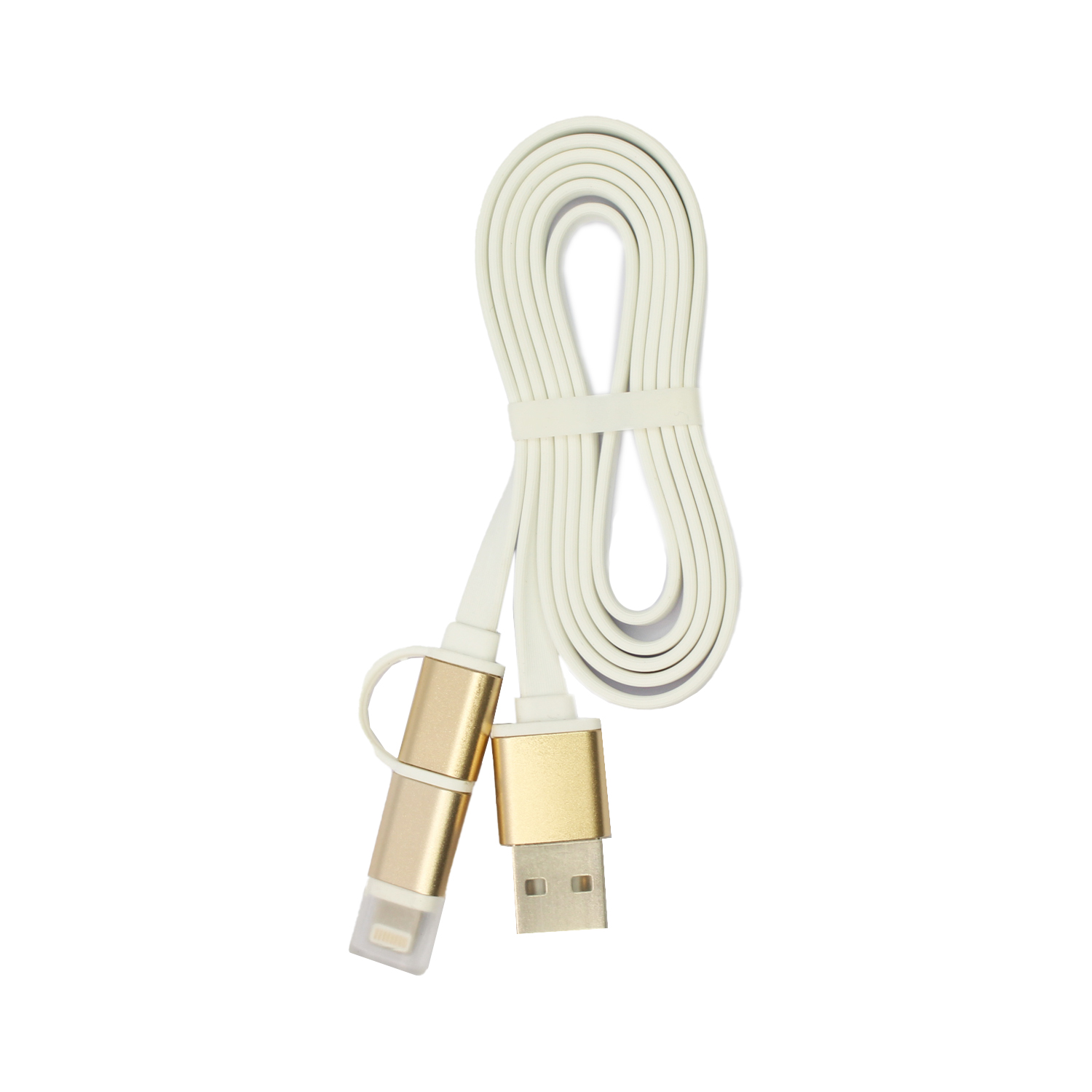 Cable de transferencia de datos 2×1, compatible con USB A, micro USB y lightning. longitud: 100cm, color: blanco.