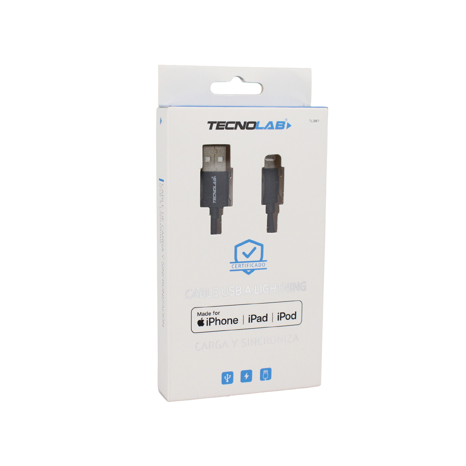 CABLE DE IPHONE Y IPAD USB A LIGHTNING CERTIFICADO POR. BLACK