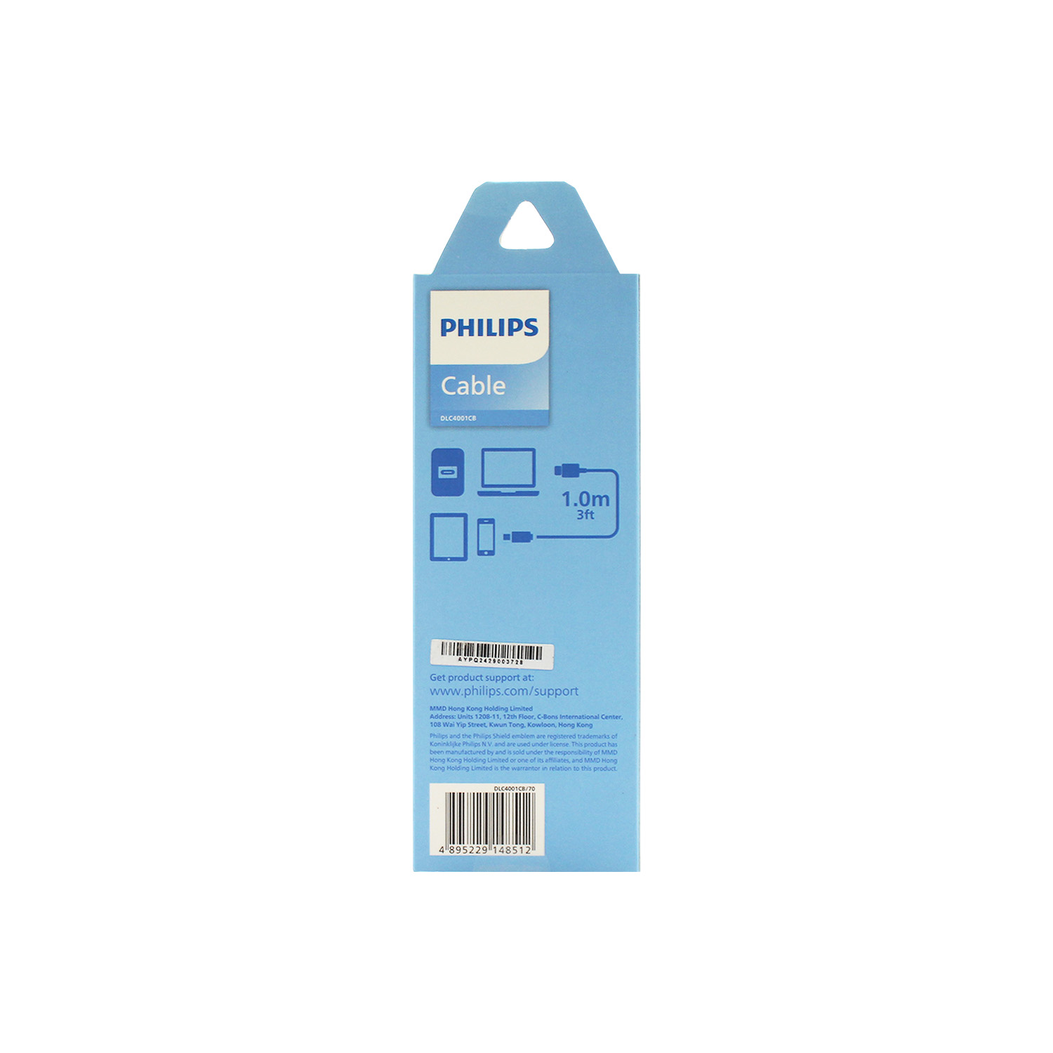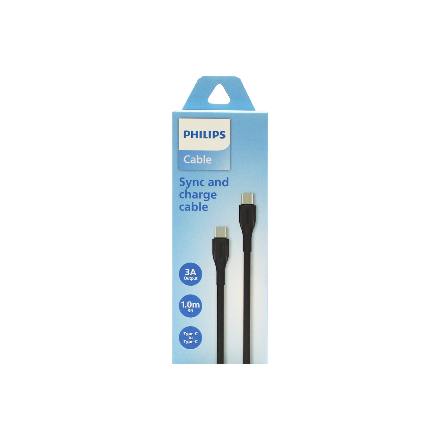CABLE PHILIPS – TIPO C 3.0 A TIPO C – 3 AMP – 1 MT – BLACK