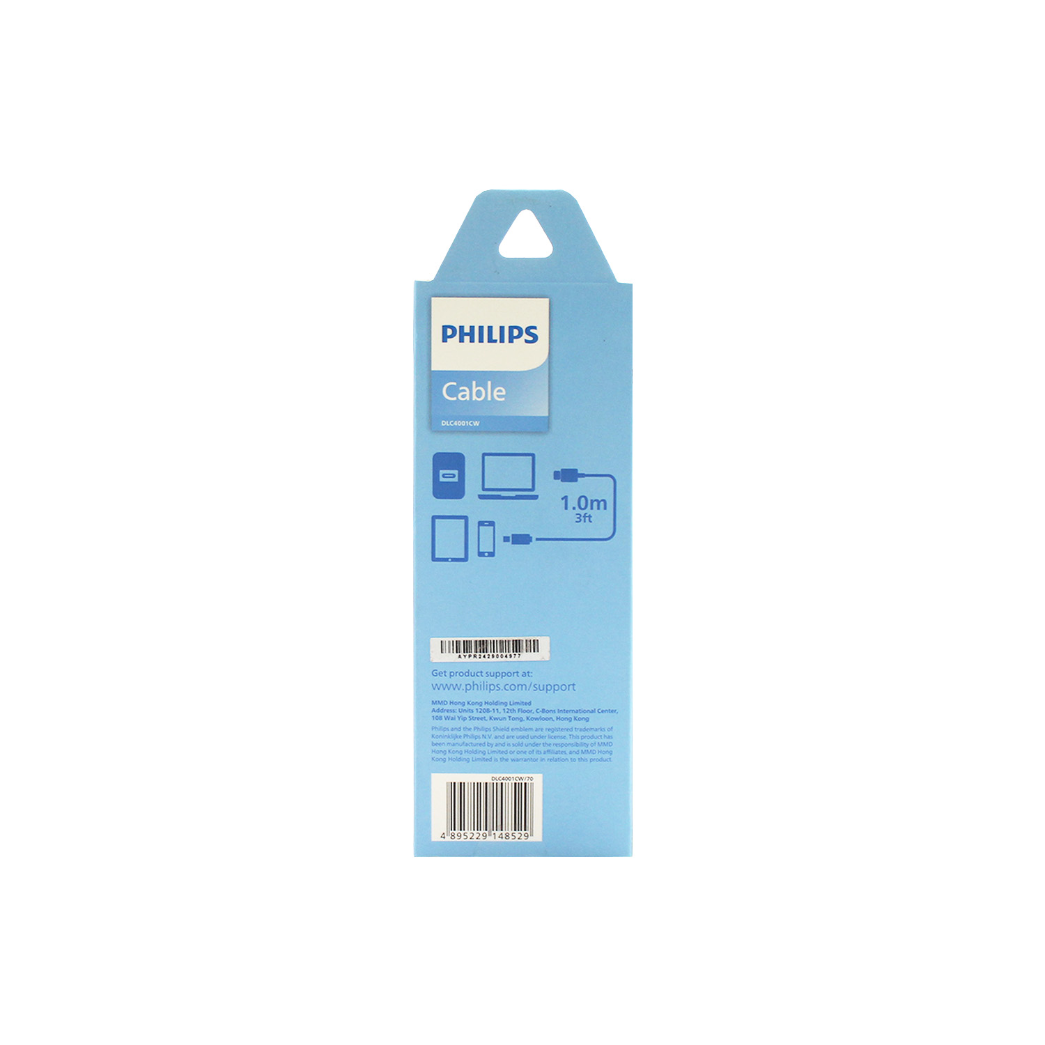 CABLE PHILIPS – TIPO C 3.0 A TIPO C – 3 AMP – 1 MT -WHITE