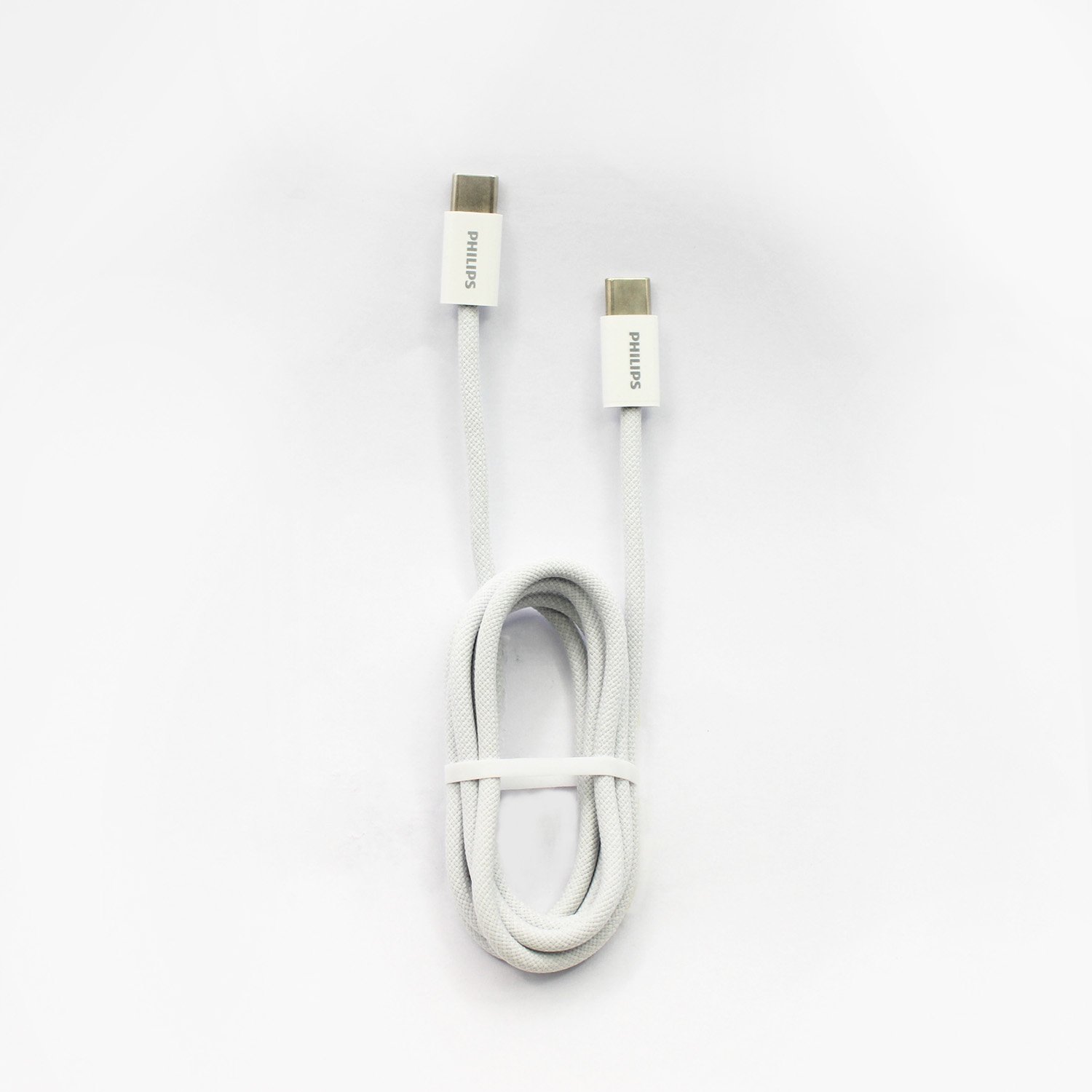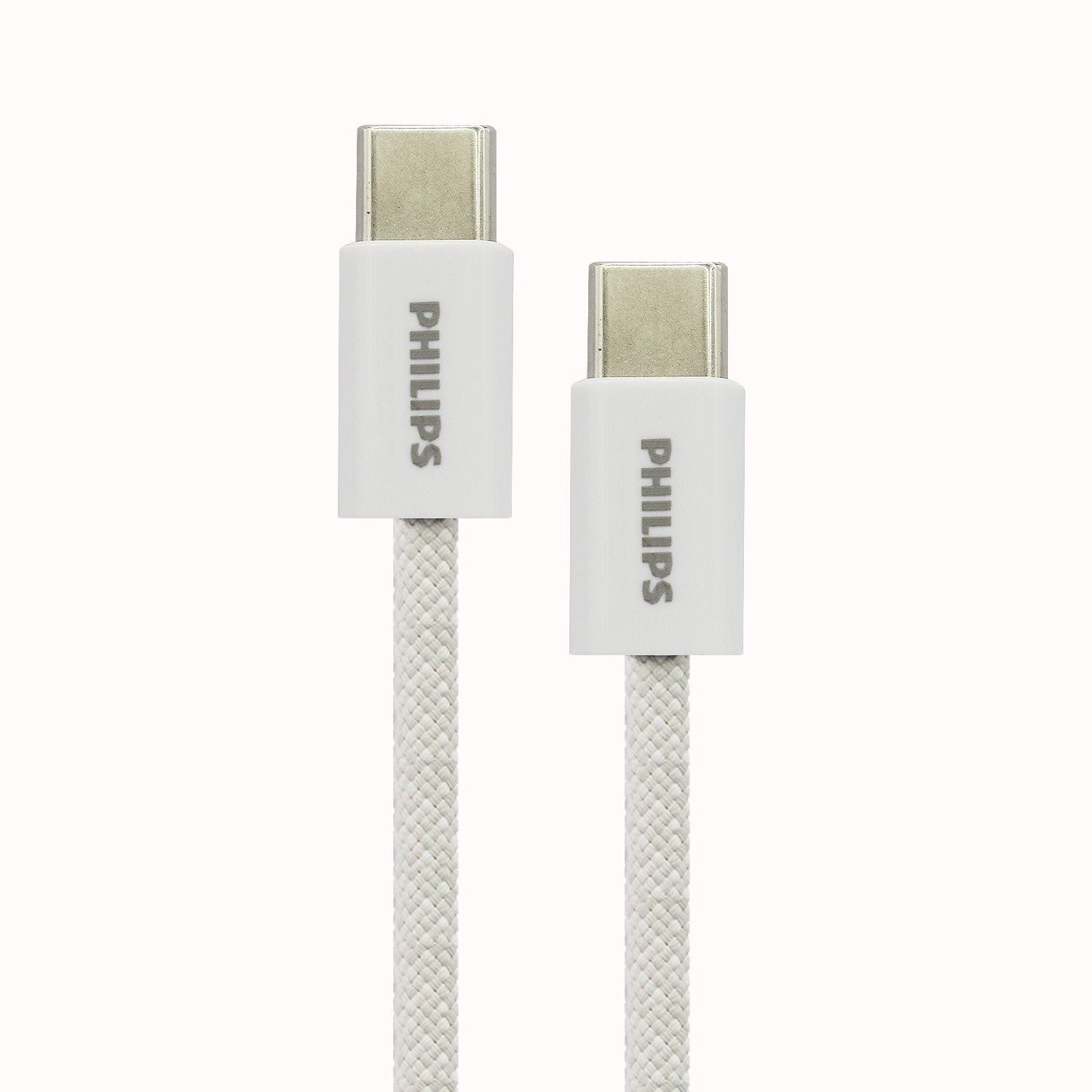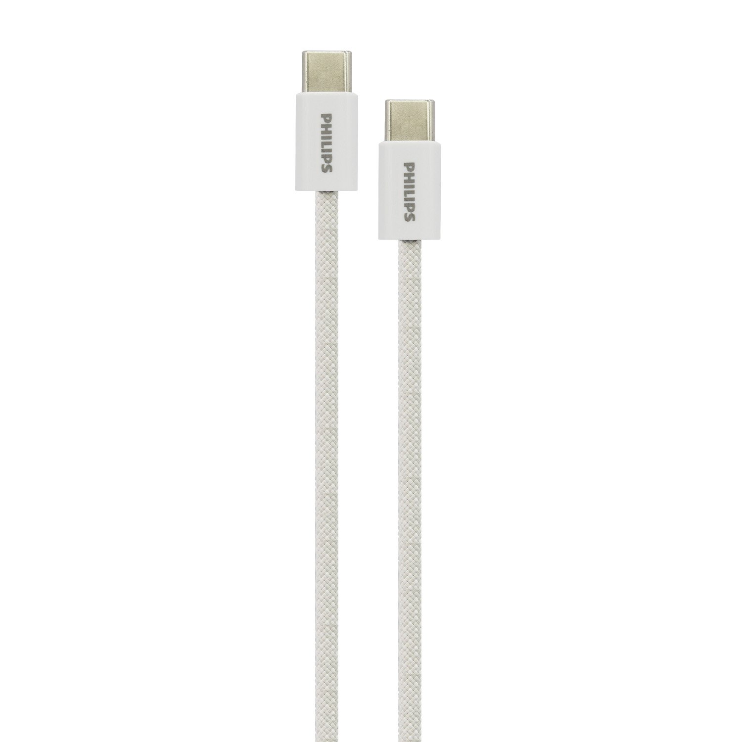 Cable USB-C 3.2 de alta velocidad, 60 W de potencia, largo de 1 metro, trenzado y blanco.