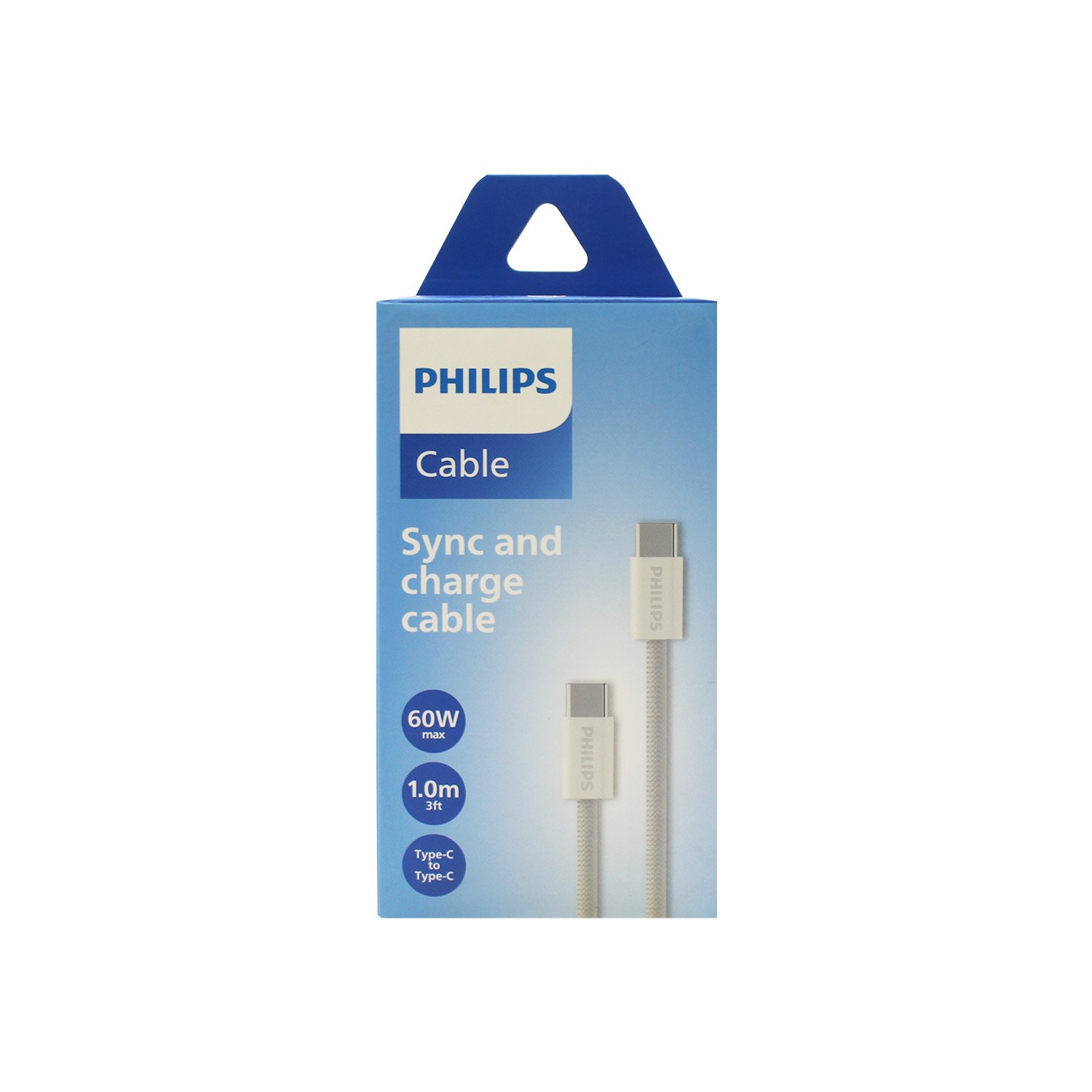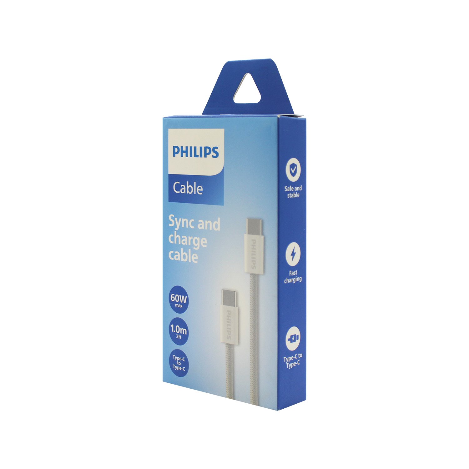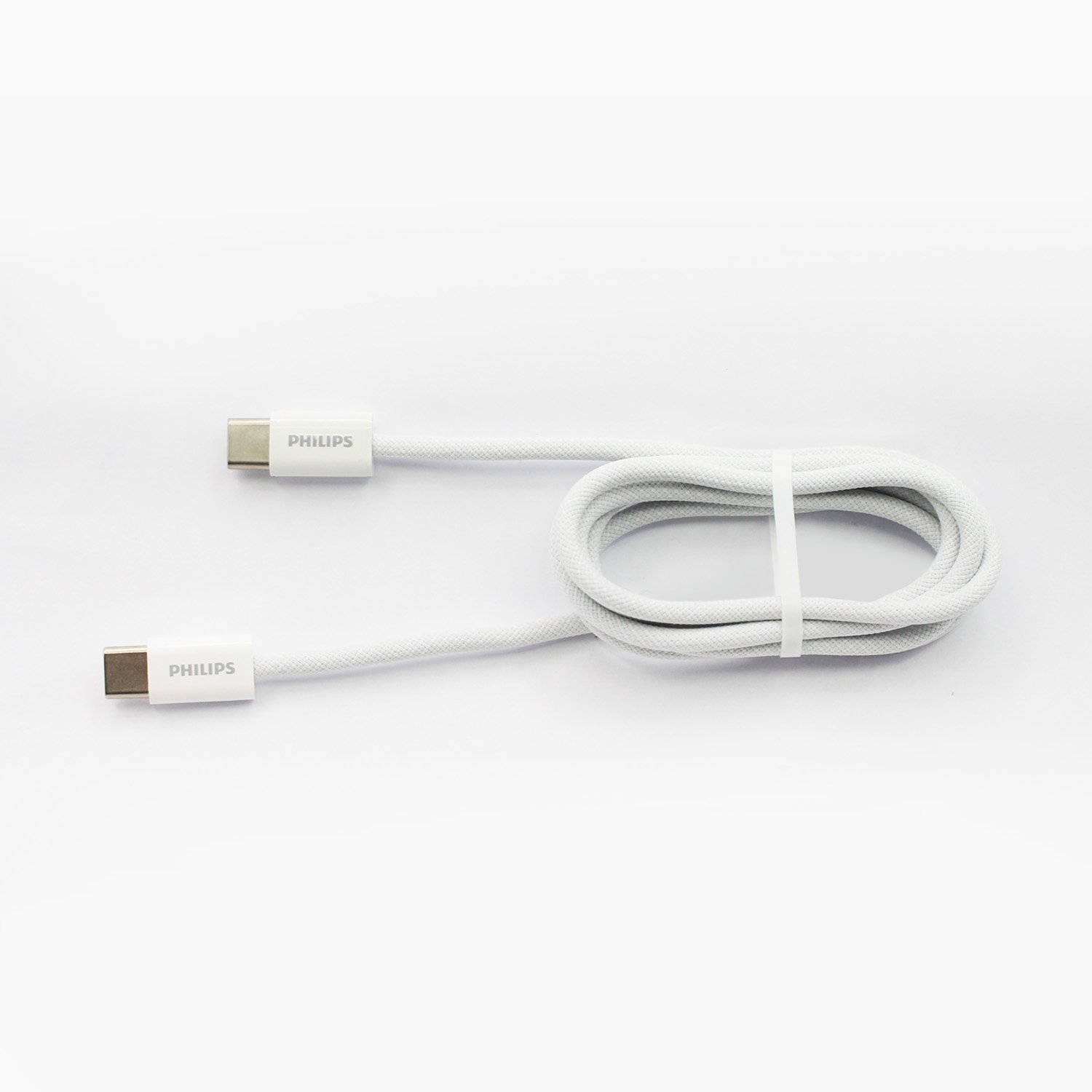 Cable USB-C 3.2 de alta velocidad, 60 W de potencia, largo de 1 metro, trenzado y blanco.