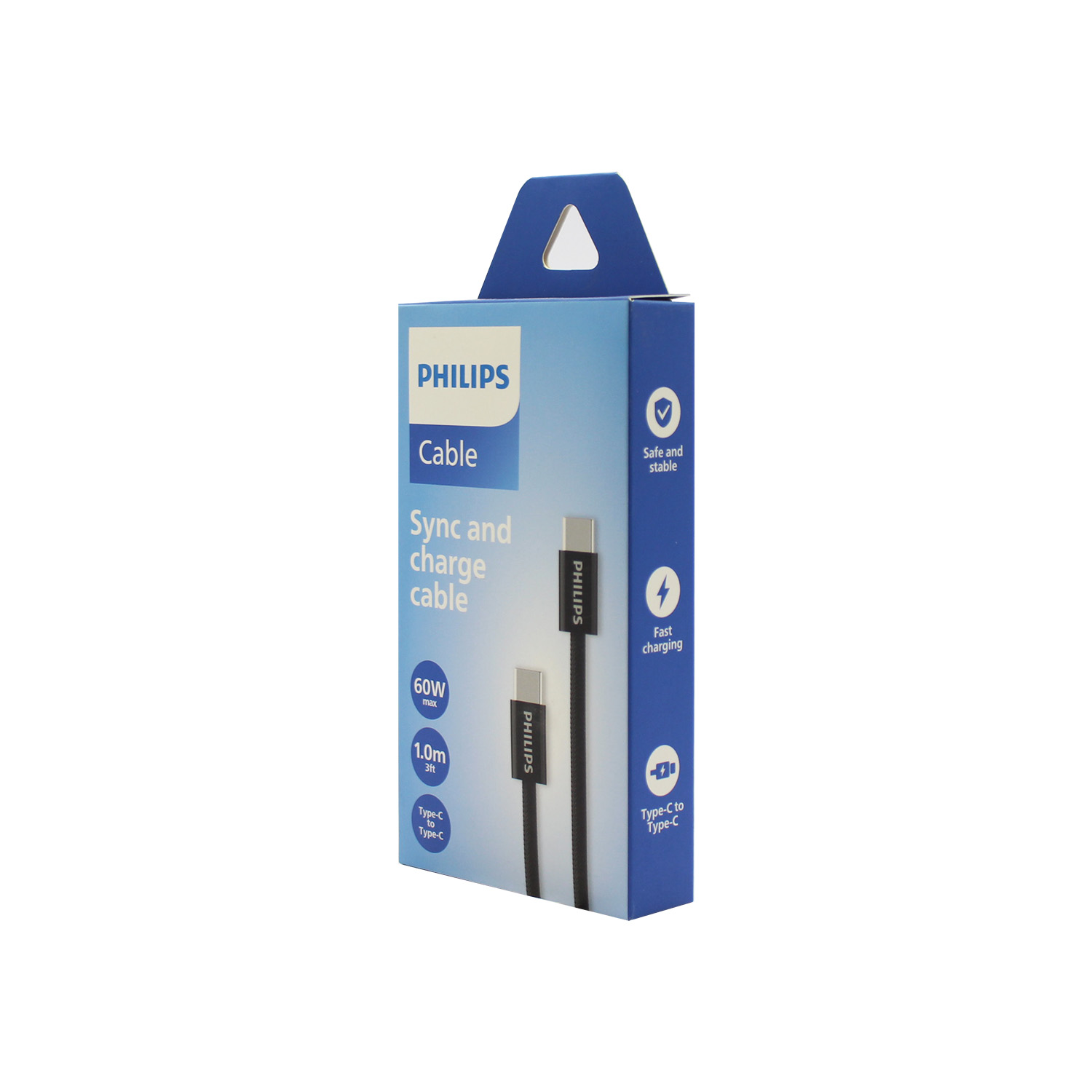 CABLE PHILIPS TIPO C 3.2 A TIPO C – SOPORTA 60WS – 1 MT – TRENZADO -WHITE