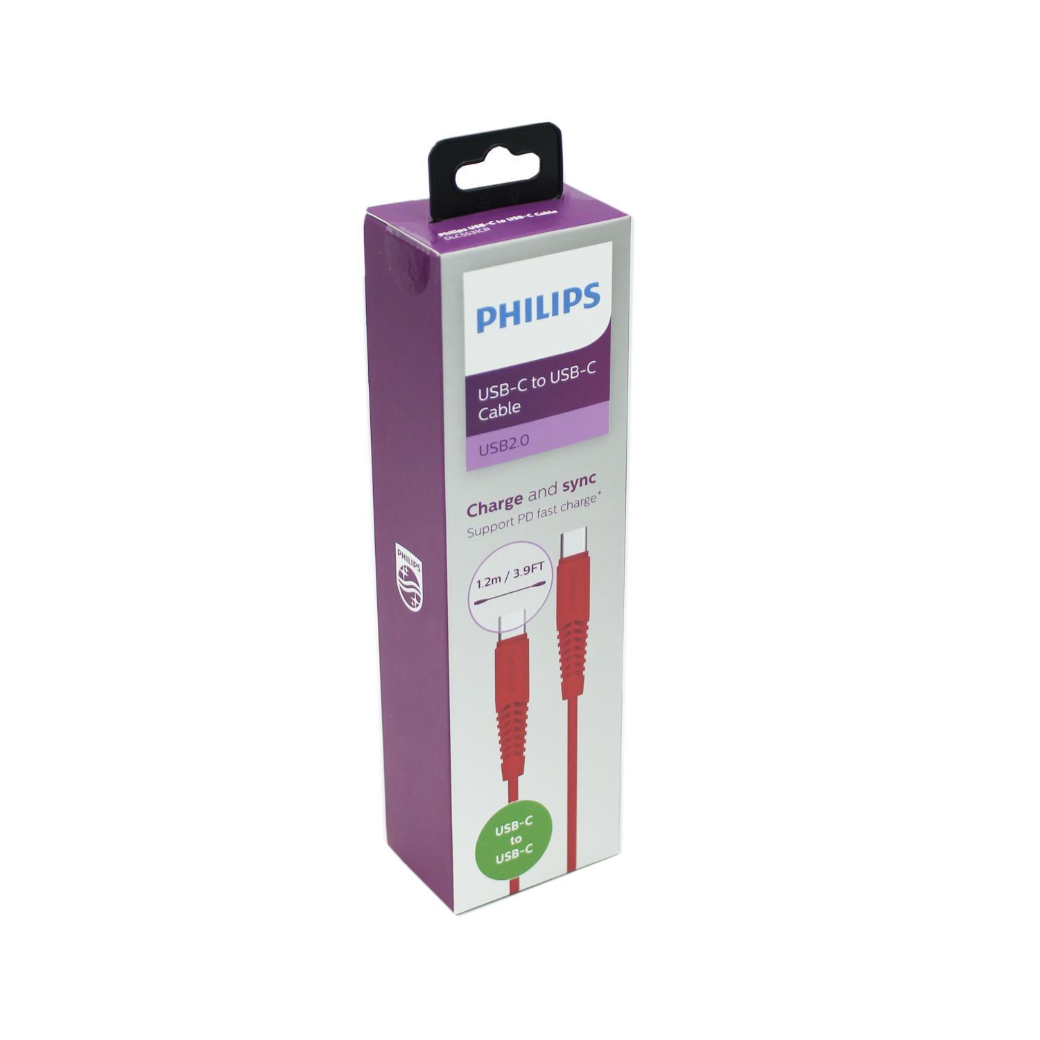 CABLE PHILIPS TIPO C A TIPO C, 1.2M, COLOR, SINCRONIZACION Y CARGA, CONECTOR USB TIPO C PARA CARGA RAPIDA, USB 2.0. RED BLACK