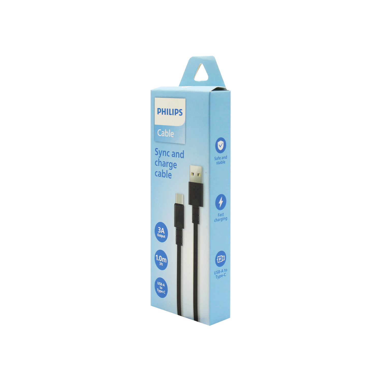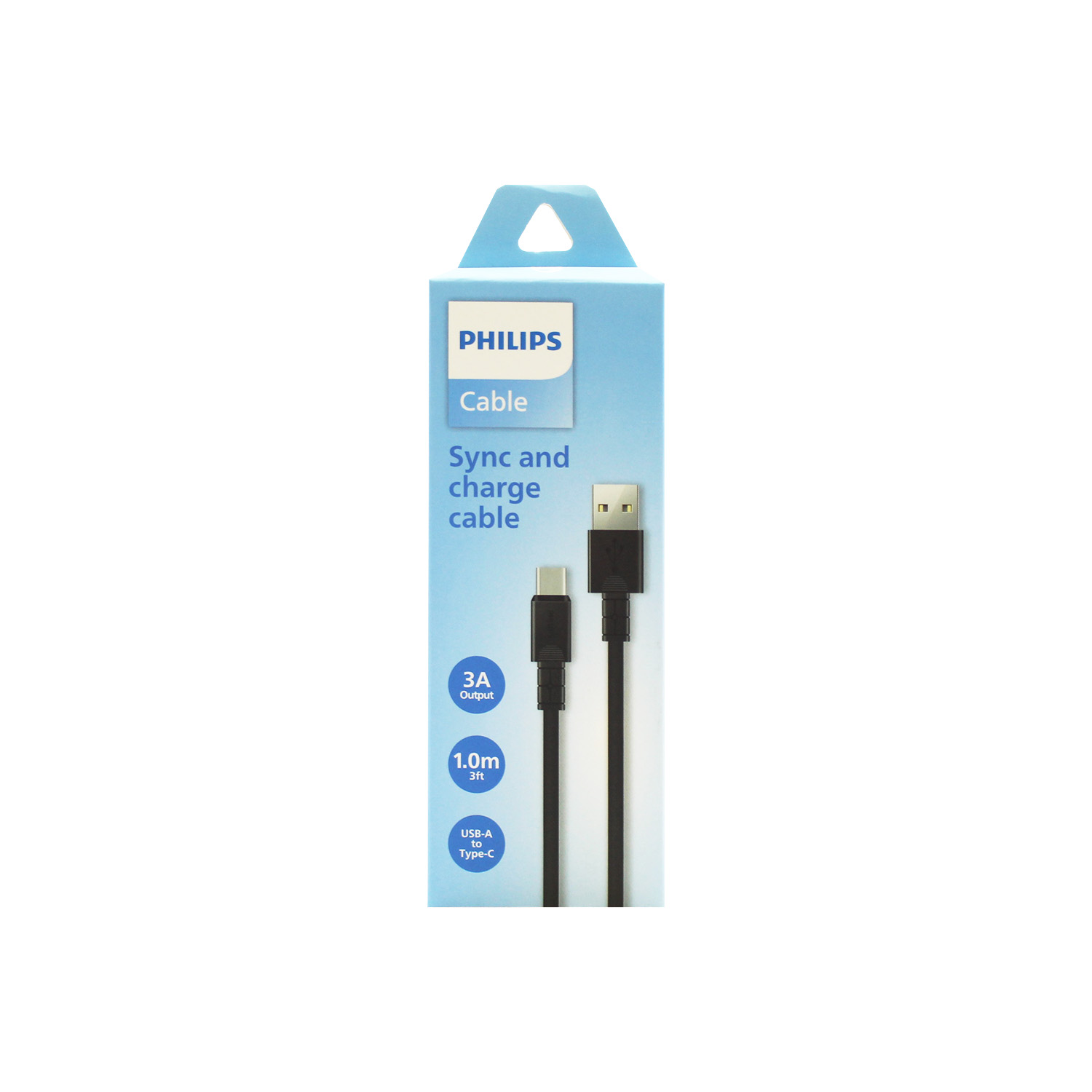 CABLE PHILIPS USB 3.0 A TIPO C – 3 AMP – 1 MT – BLACK