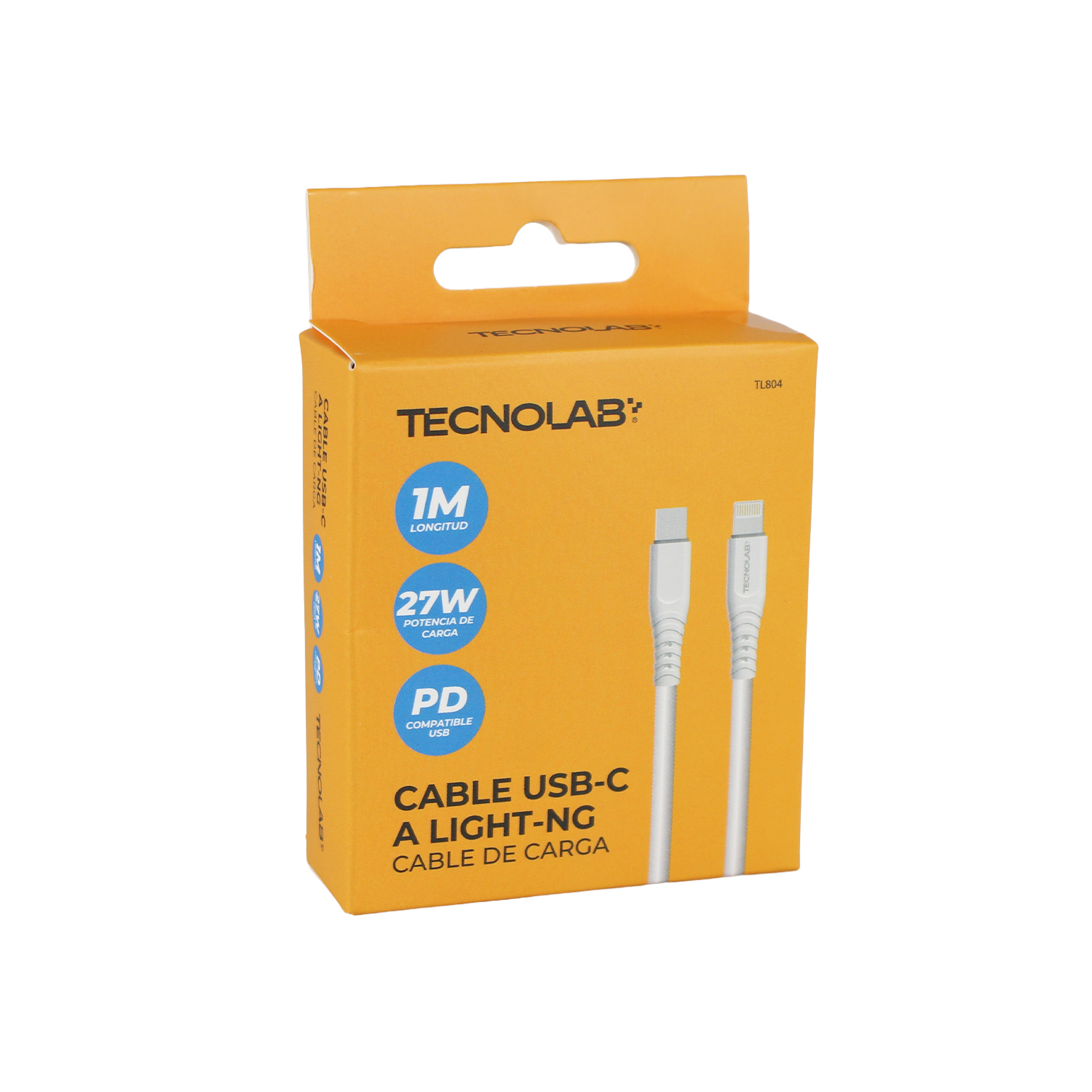 CABLE TECNOLAB 27W USB TIPO C A LIGHTNING. COMPATIBLE USB PD. 1 METRO. WHITE
