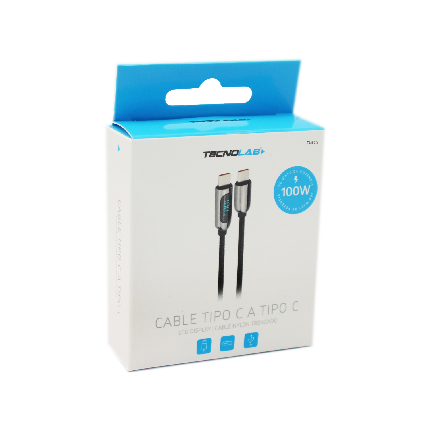 CABLE TECNOLAB TIPO C A TIPO C, 100W, DISPLAY LED, TRENZADO, 2 MTS.