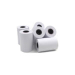 La caja de papel termico tiene 40 rollos, cada uno de 57mm x 17mts y pesa 48gr.