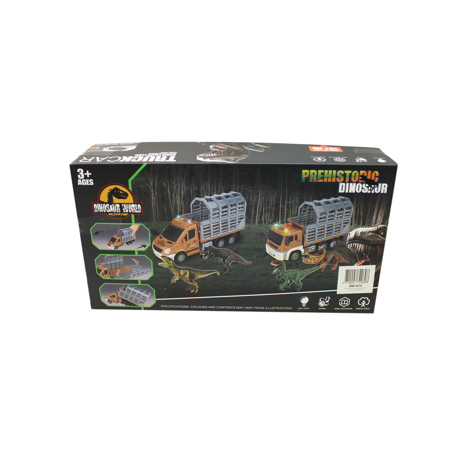 CAMION REMOLQUE JAULA CON LUZ Y SONIDO – INCLUYE DINOSAURIOS