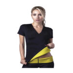 Camiseta tipo Cinturilla Calentadora Hot Shappers elaborada con neopreno que aumenta la temperatura corporal y ayuda a quemar la grasa mas rápidamente.