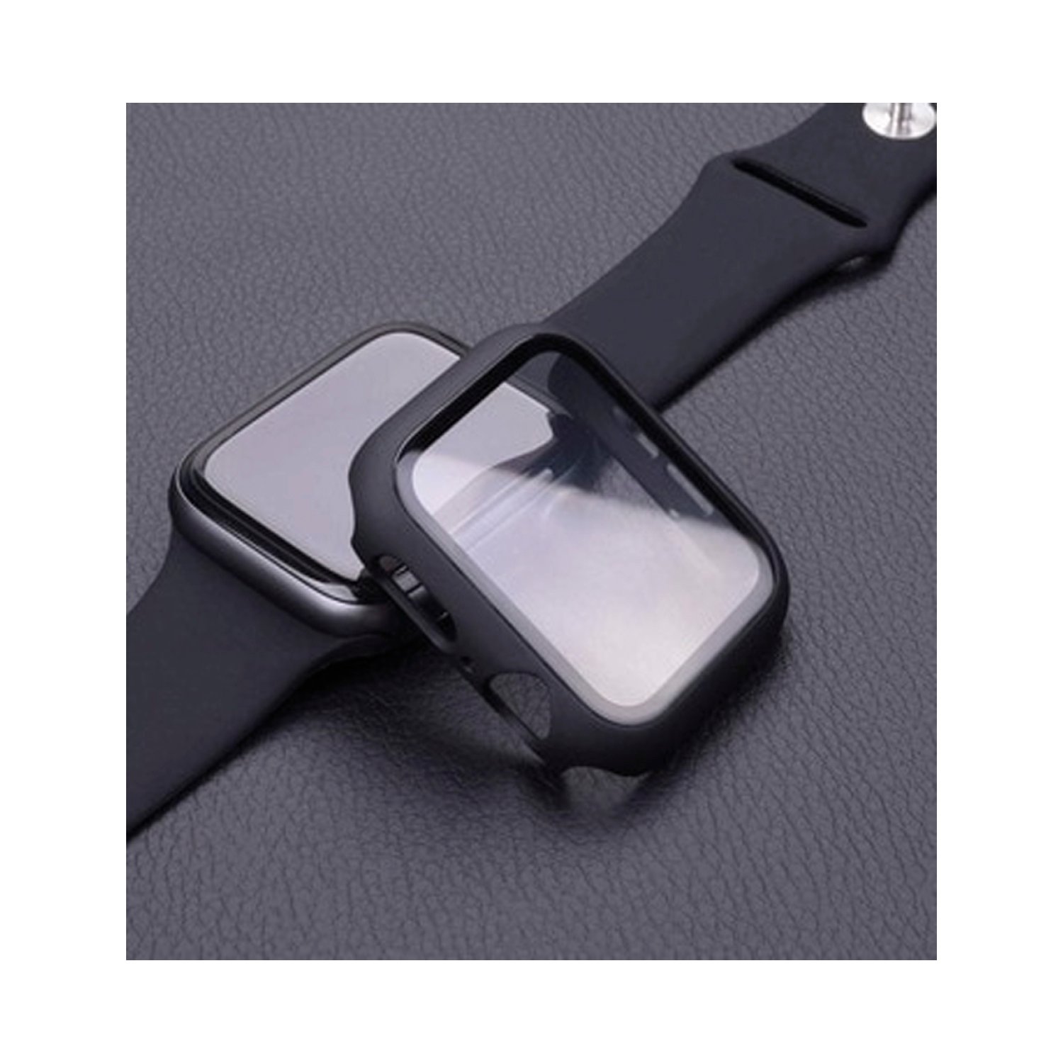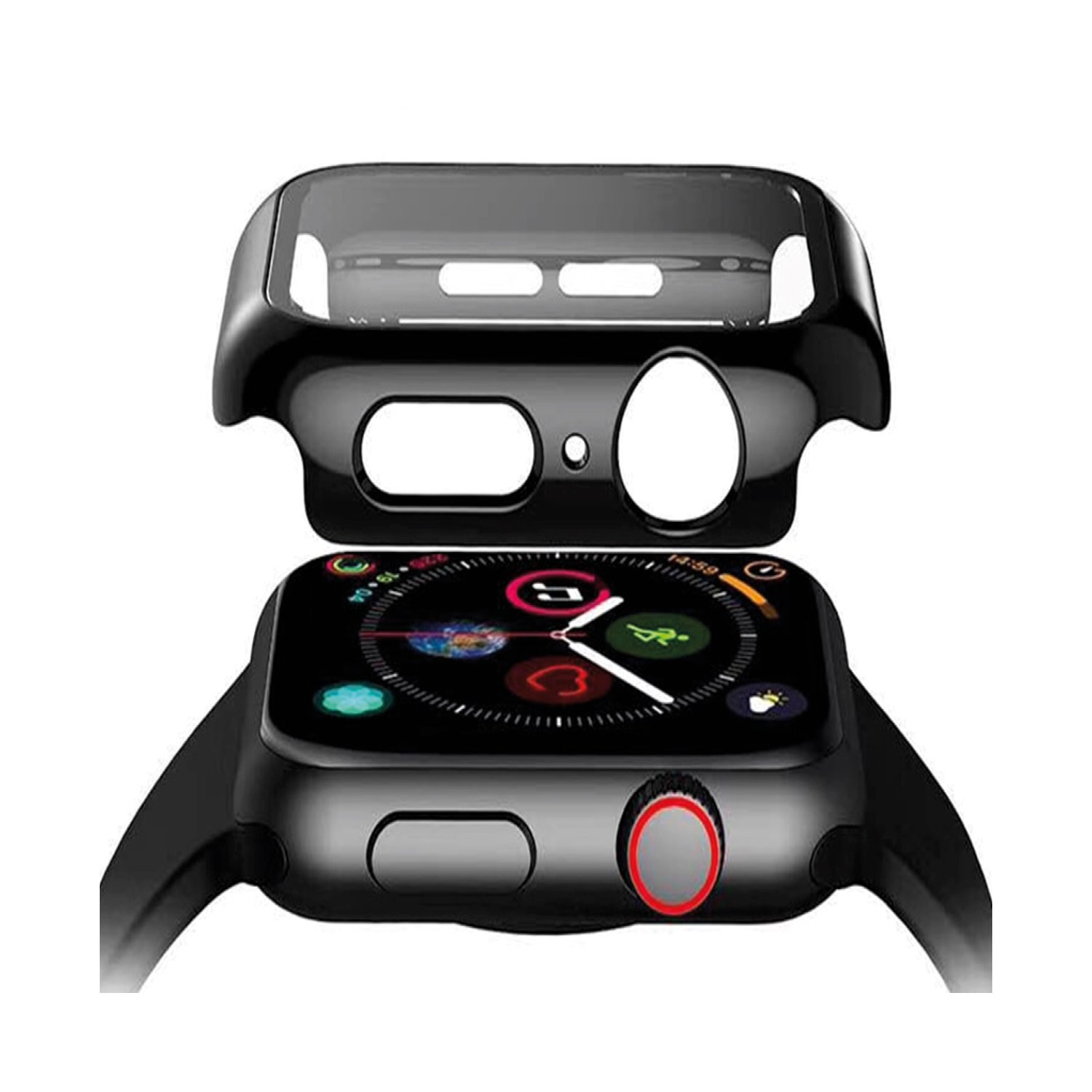 Protector de pantalla para Apple Watch 44 mm, color negro, cubre bordes, evita arañazos/caídas, alta transparencia.