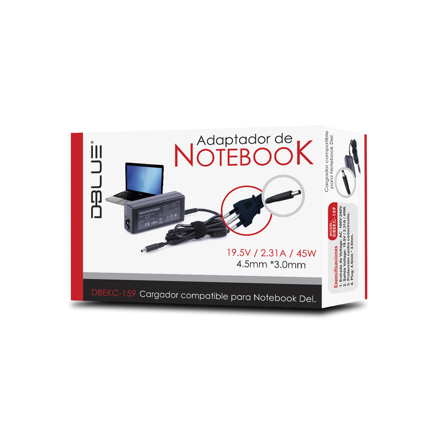 CARGADOR DE NOTEBOOK DBLUE 19.5V 2.31A 4.5*3.0MM COMPATIBLE DELL