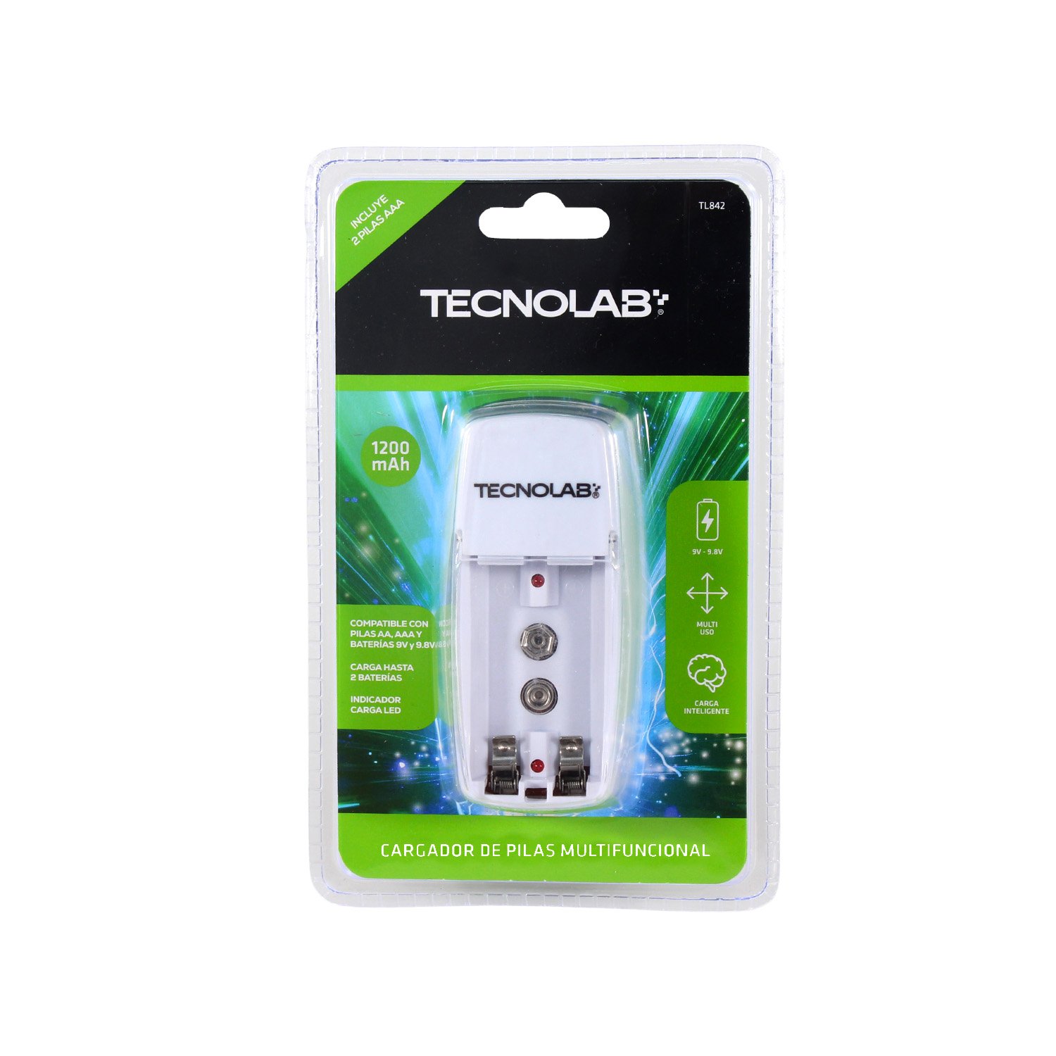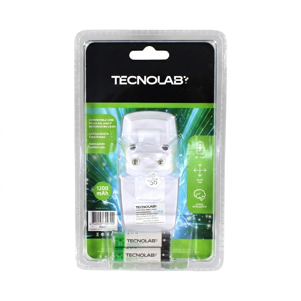 Mantén tus baterías siempre listas con el cargador de pilas multifuncional TecnoLab, una solución práctica y versátil para el uso diario en el hogar u oficina.