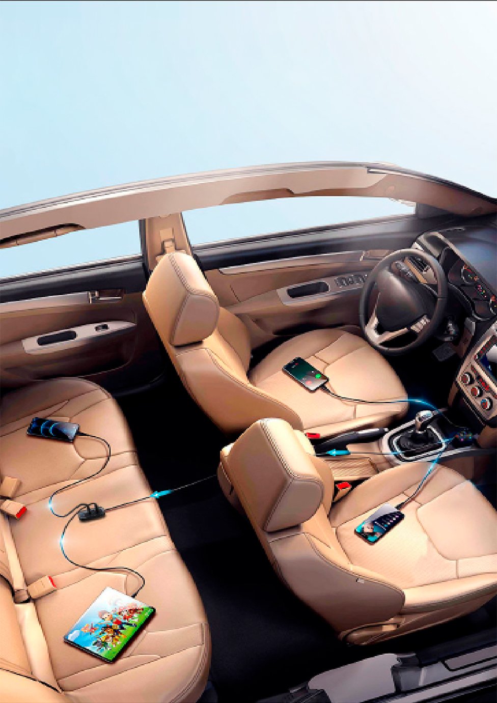 Este cargador multipuerto para automóvil representa una excelente oportunidad de abastecimiento para el sector de accesorios móviles, respondiendo directamente a la alta demanda de soluciones de carga para familias y servicios de transporte de pasajeros. Su diseño innovador con un cable extensor de 1.5 metros resuelve el problema clásico de la falta de acceso a energía en los asientos traseros, democratizando la carga dentro del vehículo. Estas características lo convierten en un artículo de alta rotación, ideal para potenciar el catálogo de canales minoristas, servitecas y distribuidores de electrónica, asegurando un atractivo margen de comercialización.