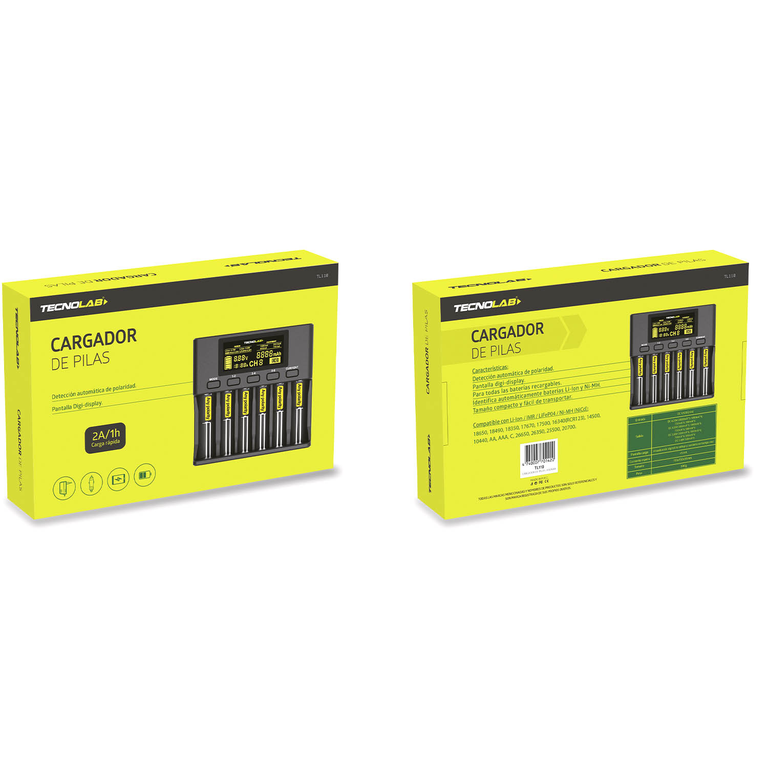 CARGADOR PILAS 18650, 26650, 21700, 18350 AA AAA 3.7V / 3.2V / 1.2V / NIMH LITHIUM