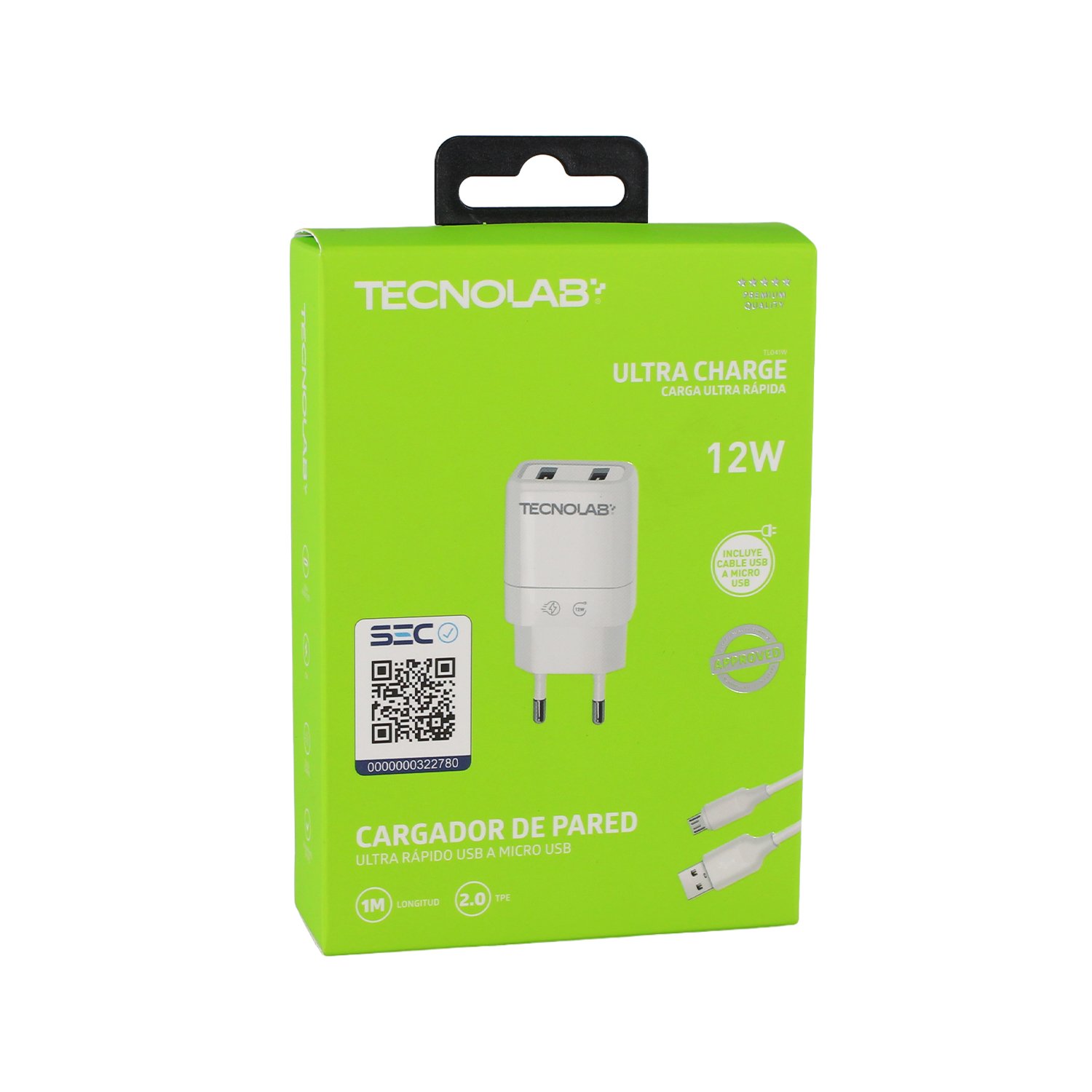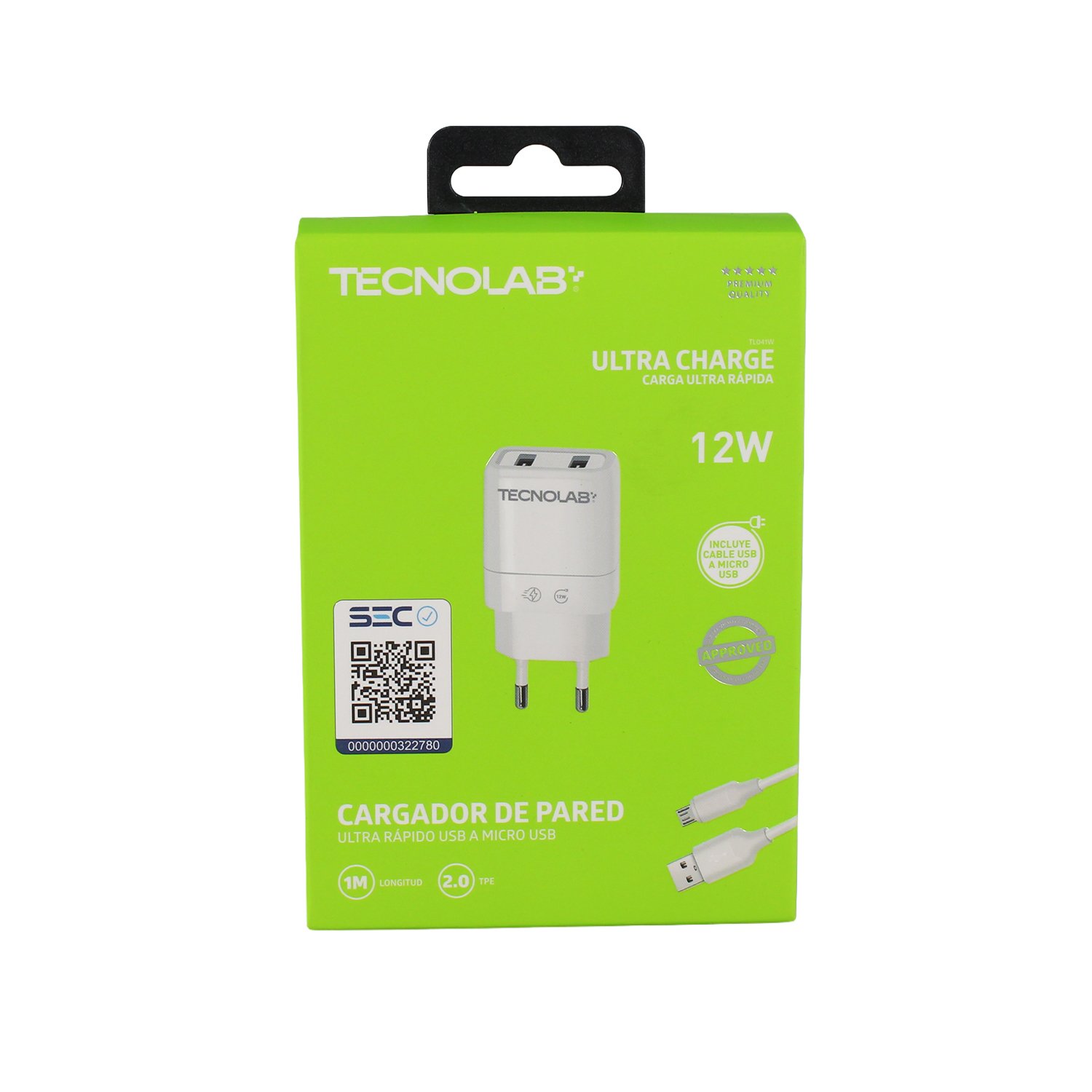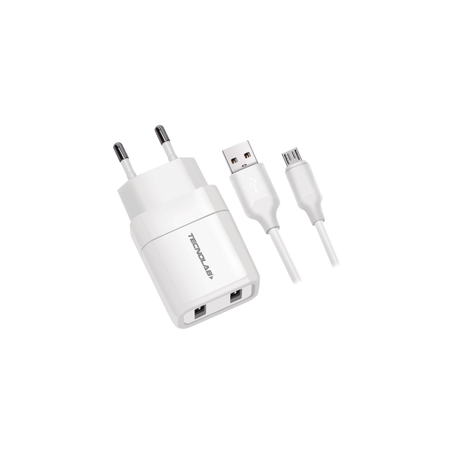 Cargador Tecnolab dual USB 12W, USB a micro USB