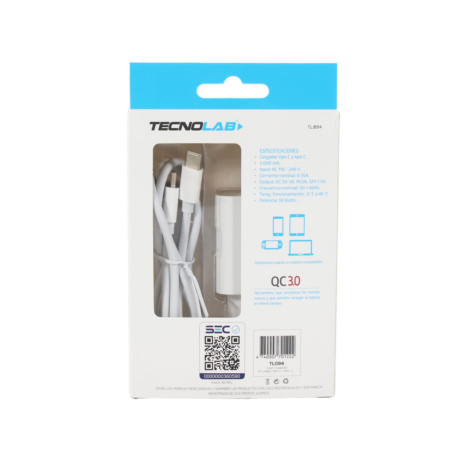 Cargador PD 18w tipo c Tecnolab