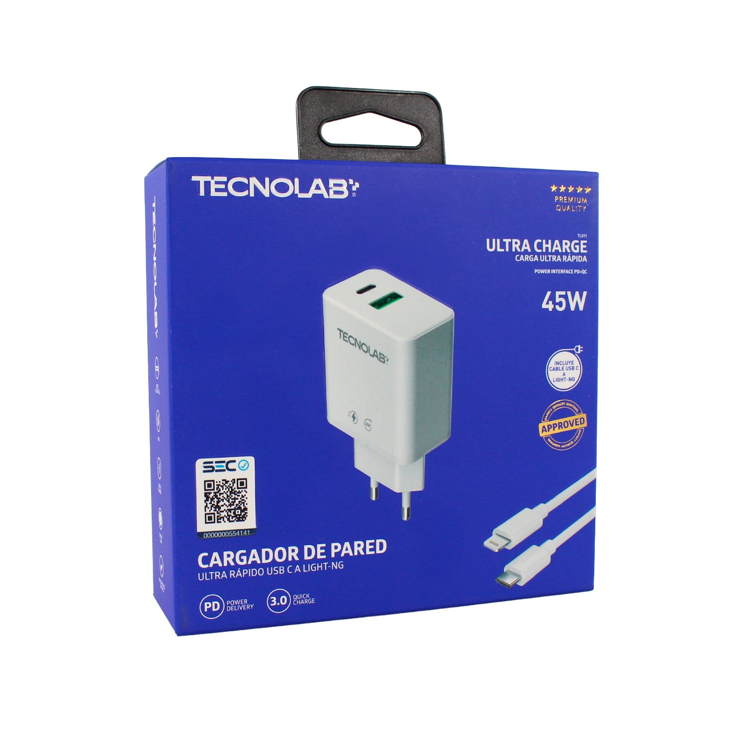 El Cargador Ultra Charge 45W de TecnoLab está diseñado para quienes buscan máxima velocidad y seguridad en la carga de dispositivos Apple y Android.