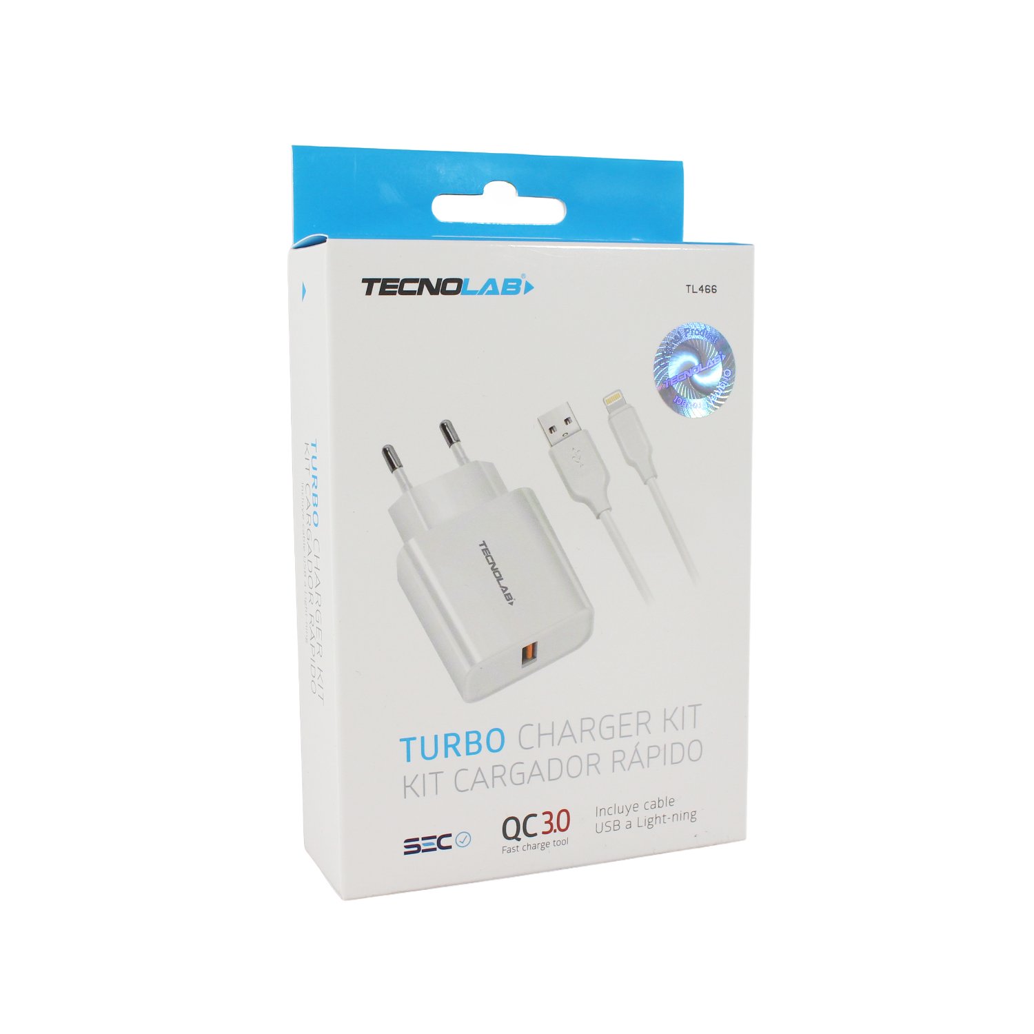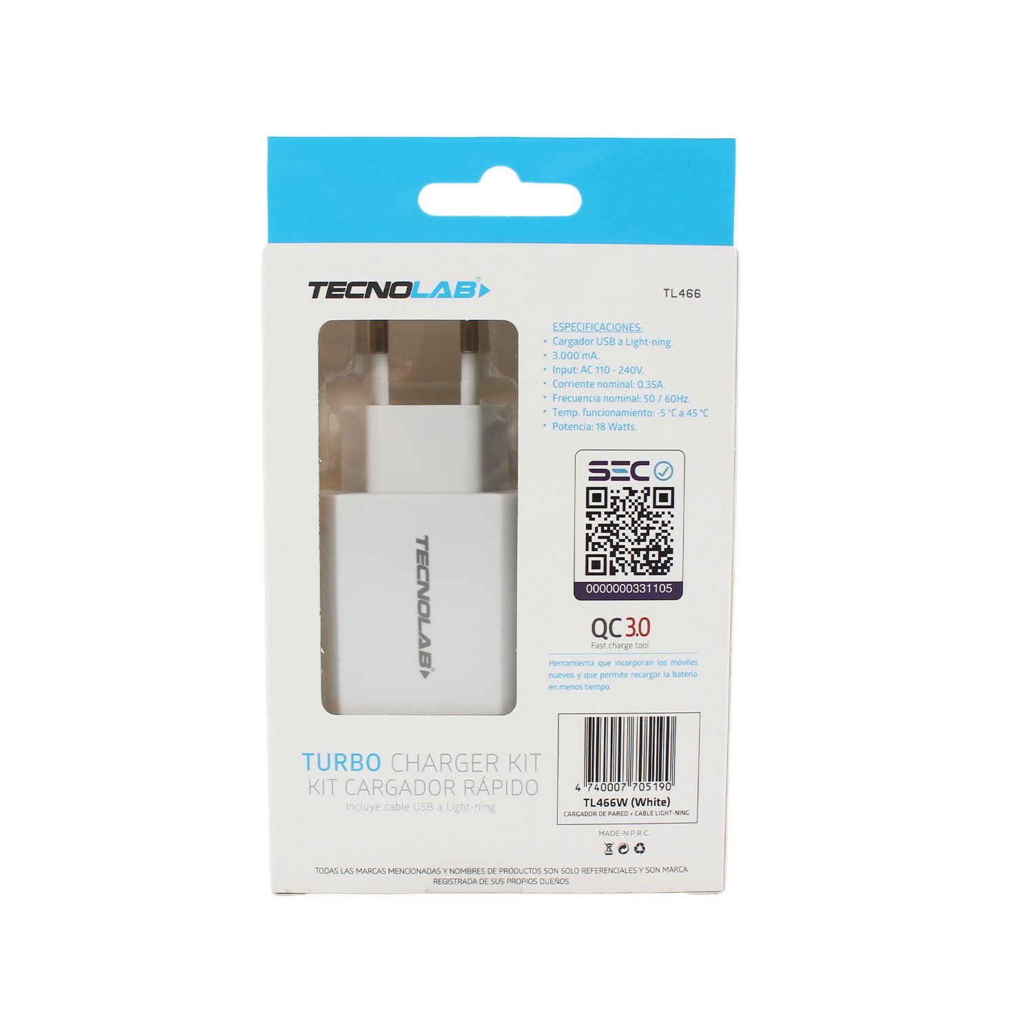 Cargador Tecnolab 18W USB a Lightning White