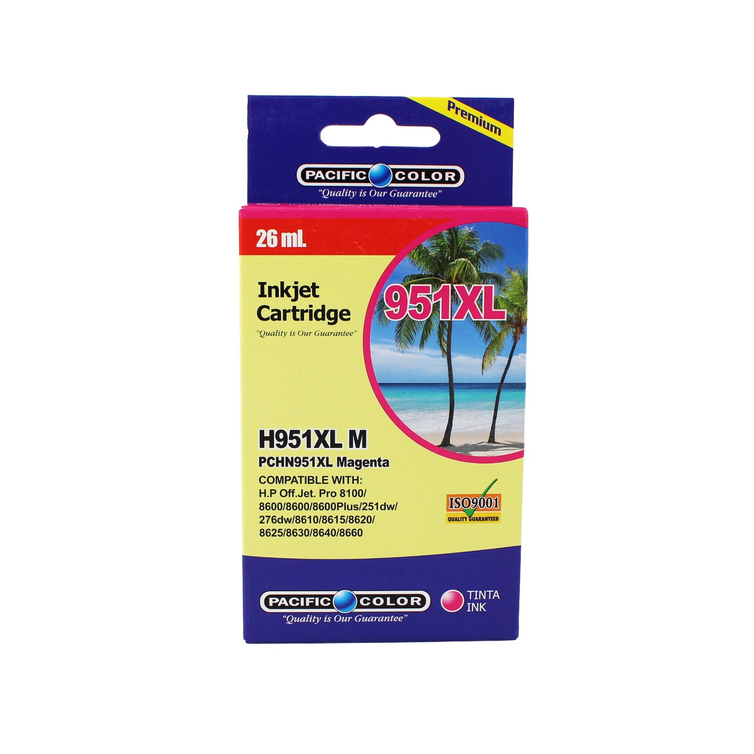 Tinta compatible con impresoras hp951xl, marca pacific color, para impresión en color magenta.