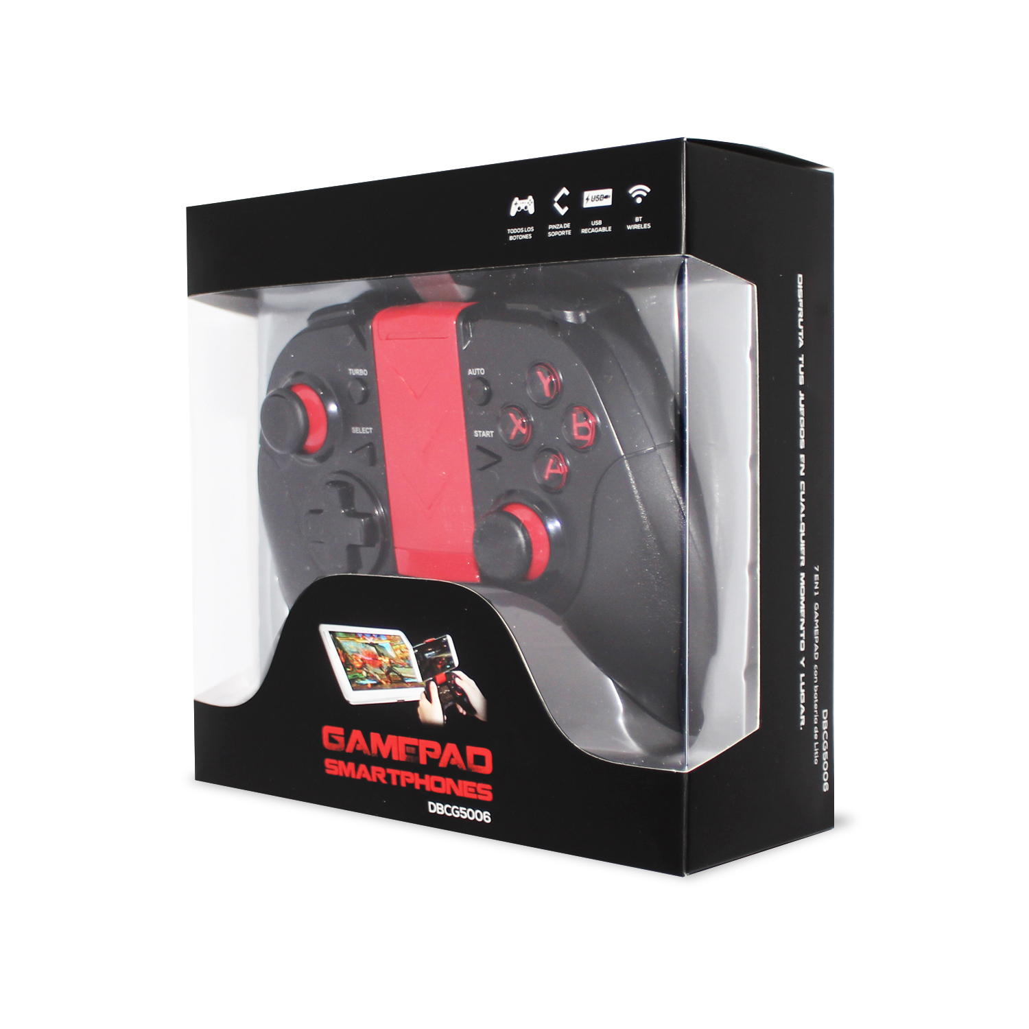 Control joystick bluetooth para celular, TV y PSP. conectividad inalámbrica vía bluetooth V3.0. batería interna recargable. teclas ergonómicas y cómodas. incluye cable USB para cargar la palanca y adaptador gancho para dispositivos android.