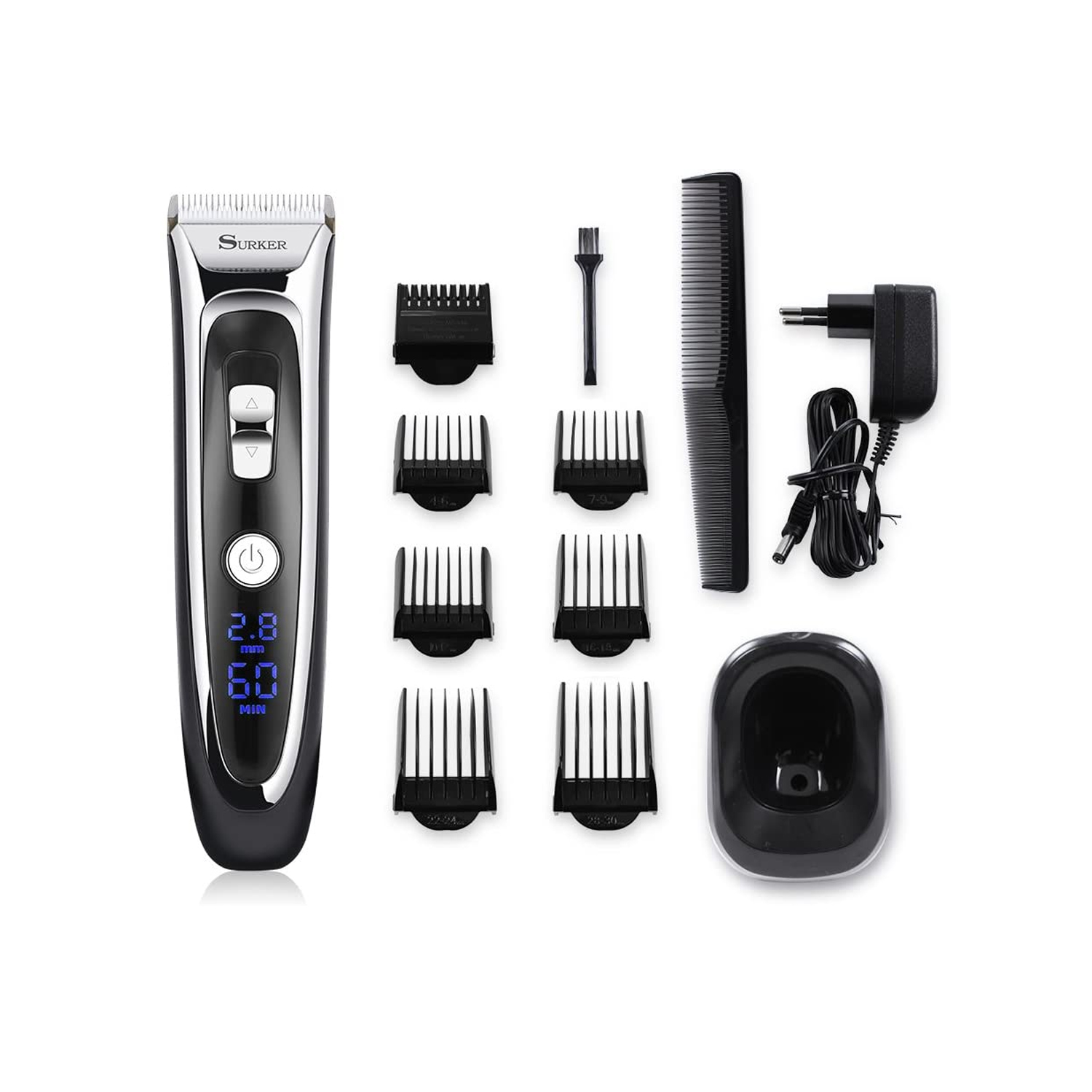 CORTADORA DE CABELLO, CABEZALES DE TITANIO Y CUCHILLAS DE CERAMICA. PANTALLA LED, 6 EXTREMOS INTERCAMBIABLES.