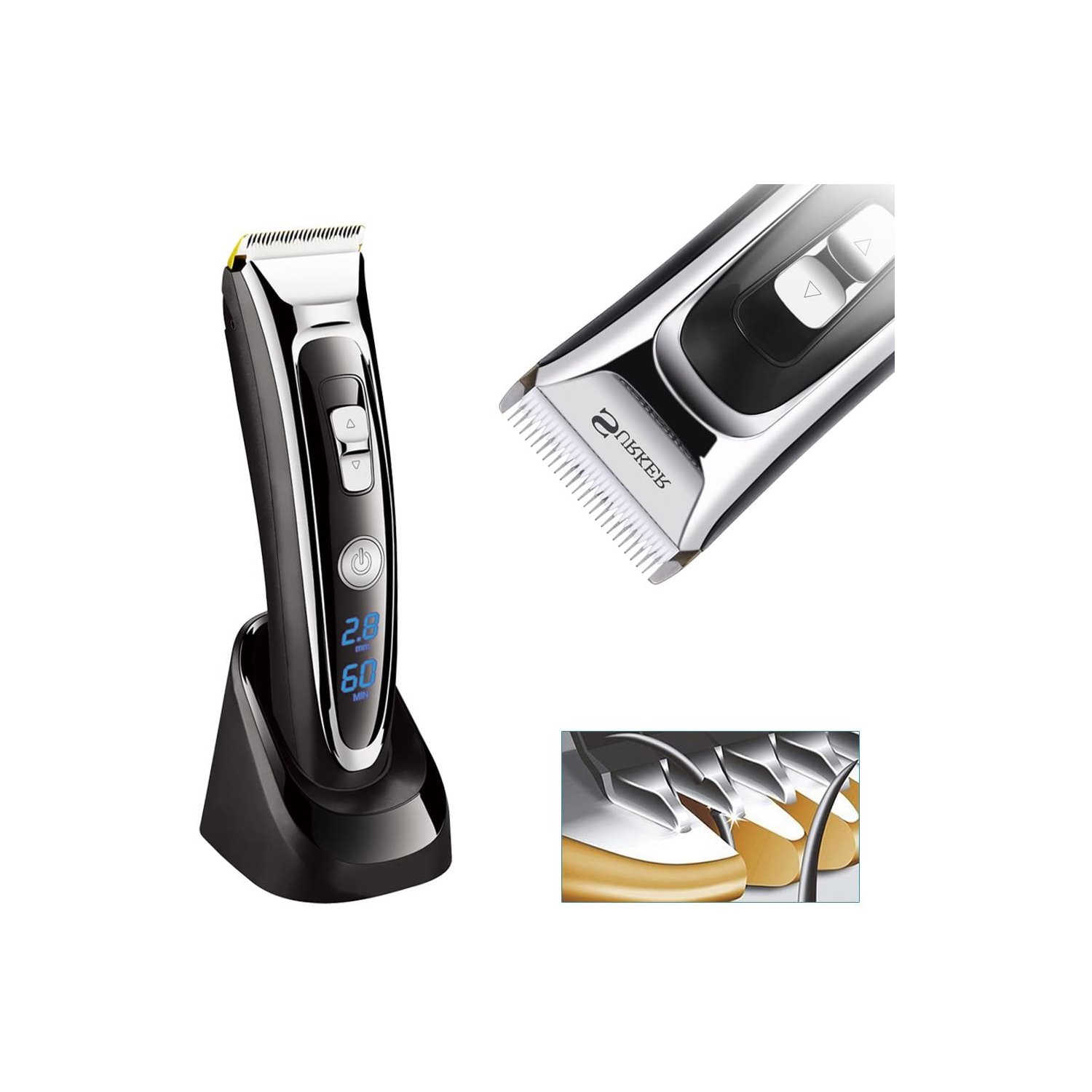 Cortadora de cabello, cabezales titanio y cuchillas cerámica