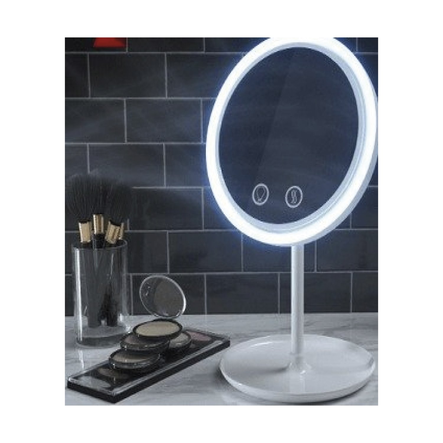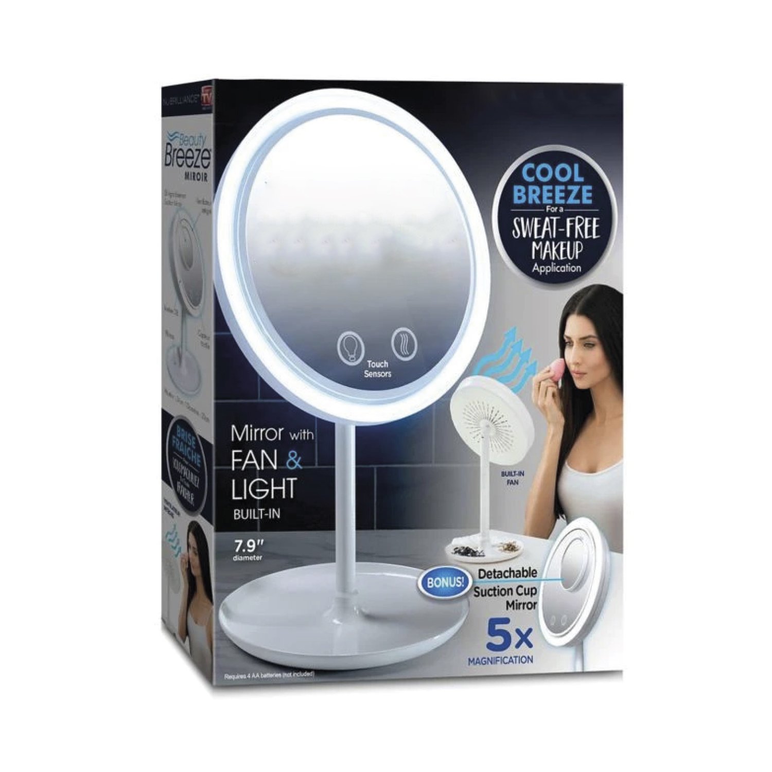 – Con luz led, ventilador y un mini espejo de 5x.