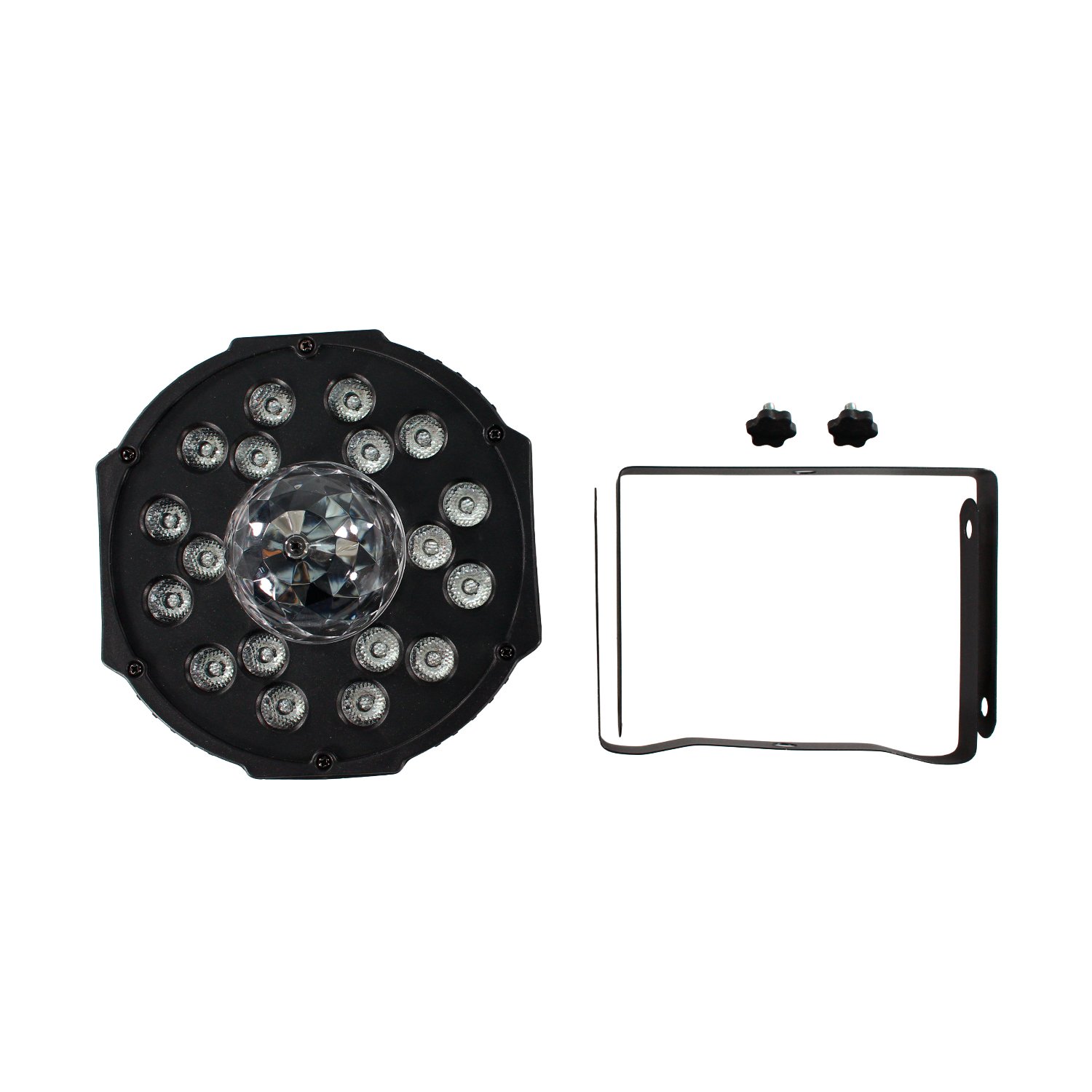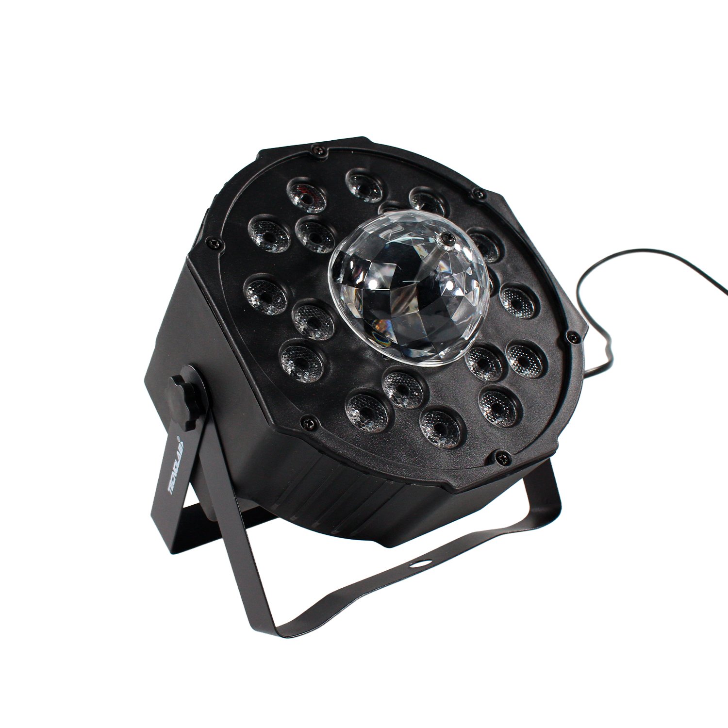 Lleva la iluminación de tus eventos a un nivel superior con un foco diseñado para impactar visualmente desde el primer momento. Este foco PAR combina iluminación RGB intensa con una luz giratoria central, creando efectos dinámicos y envolventes que transforman cualquier espacio en una experiencia visual atractiva.