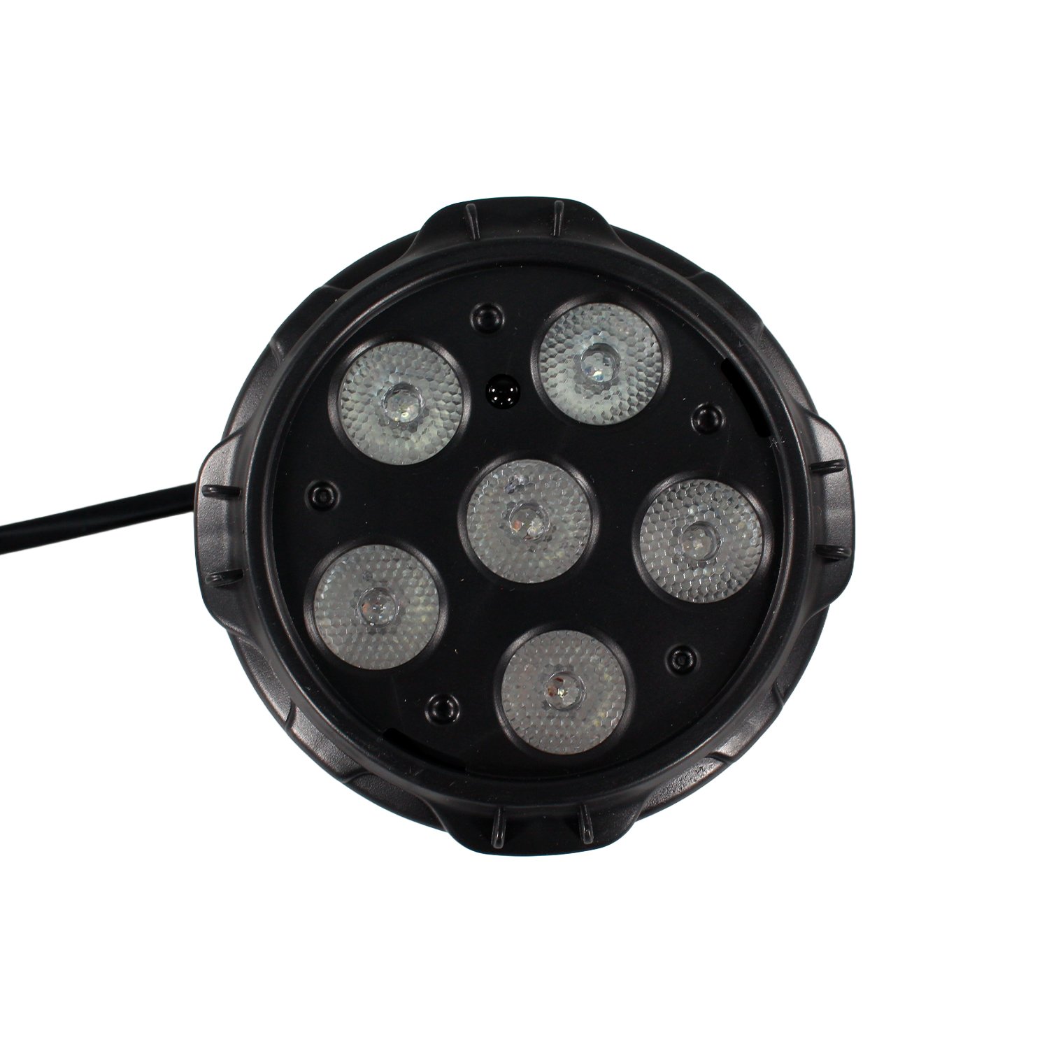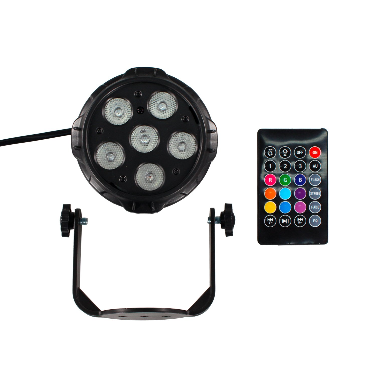 Convierte cualquier ambiente en un verdadero espectáculo con este foco PAR de iluminación avanzada que combina potencia, color y sonido en un solo equipo. Sus 6 LEDs RGB ofrecen efectos vibrantes y dinámicos, capaces de llenar salones, fiestas, escenarios y eventos con una iluminación profesional y envolvente.