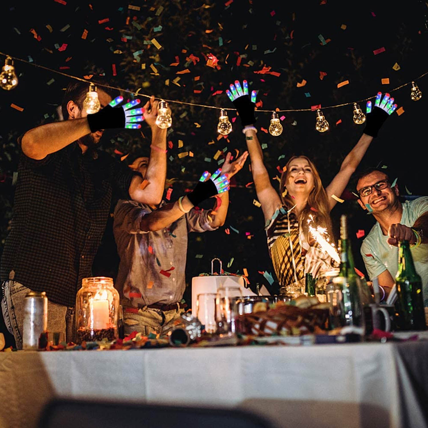 Disfruta la entretenida experiencia de usar estos guantes iluminados.