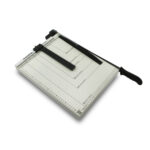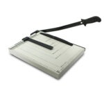 Guillotina resistente y precisa, ideal para cortar múltiples hojas con facilidad y seguridad en oficinas, colegios o talleres gráficos.