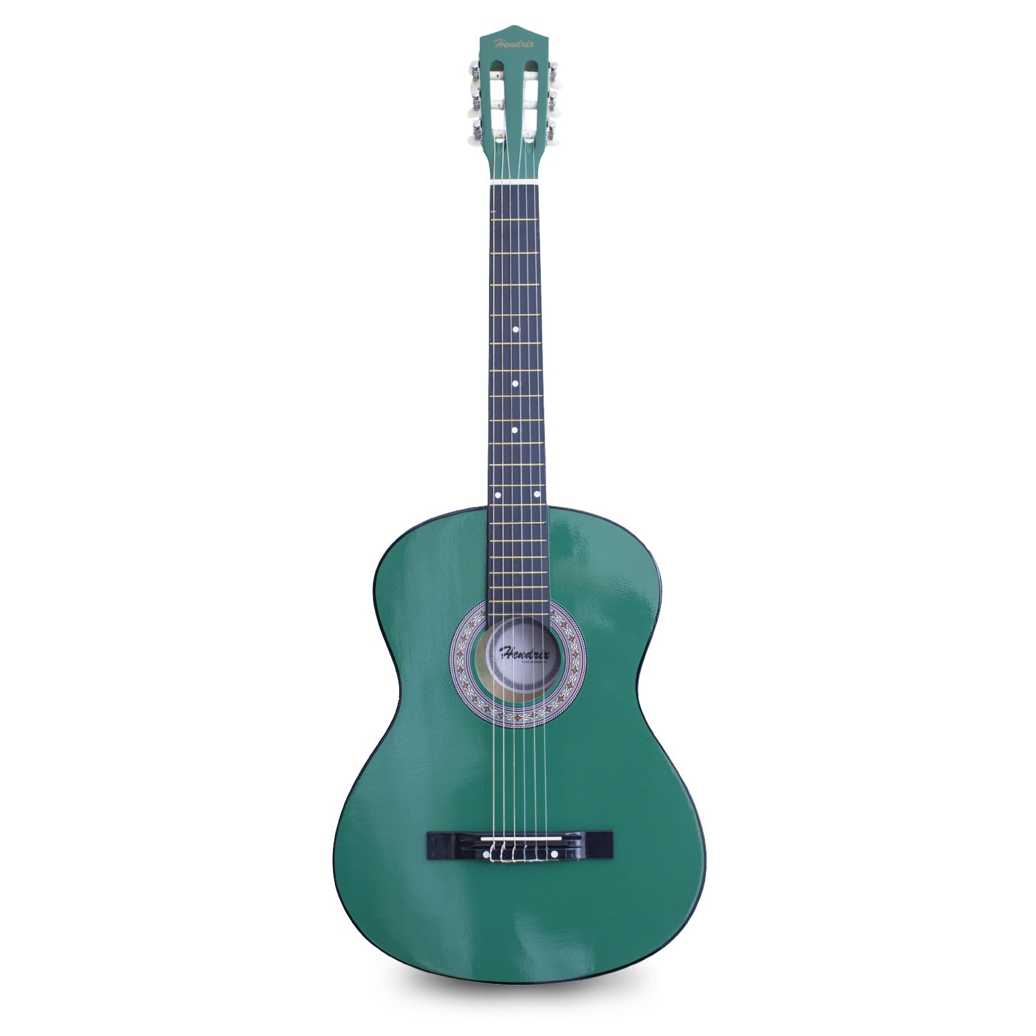 Guitarra de 36 pulgadas de madera con funda y set de cuerdas color verde. marca hendrix.