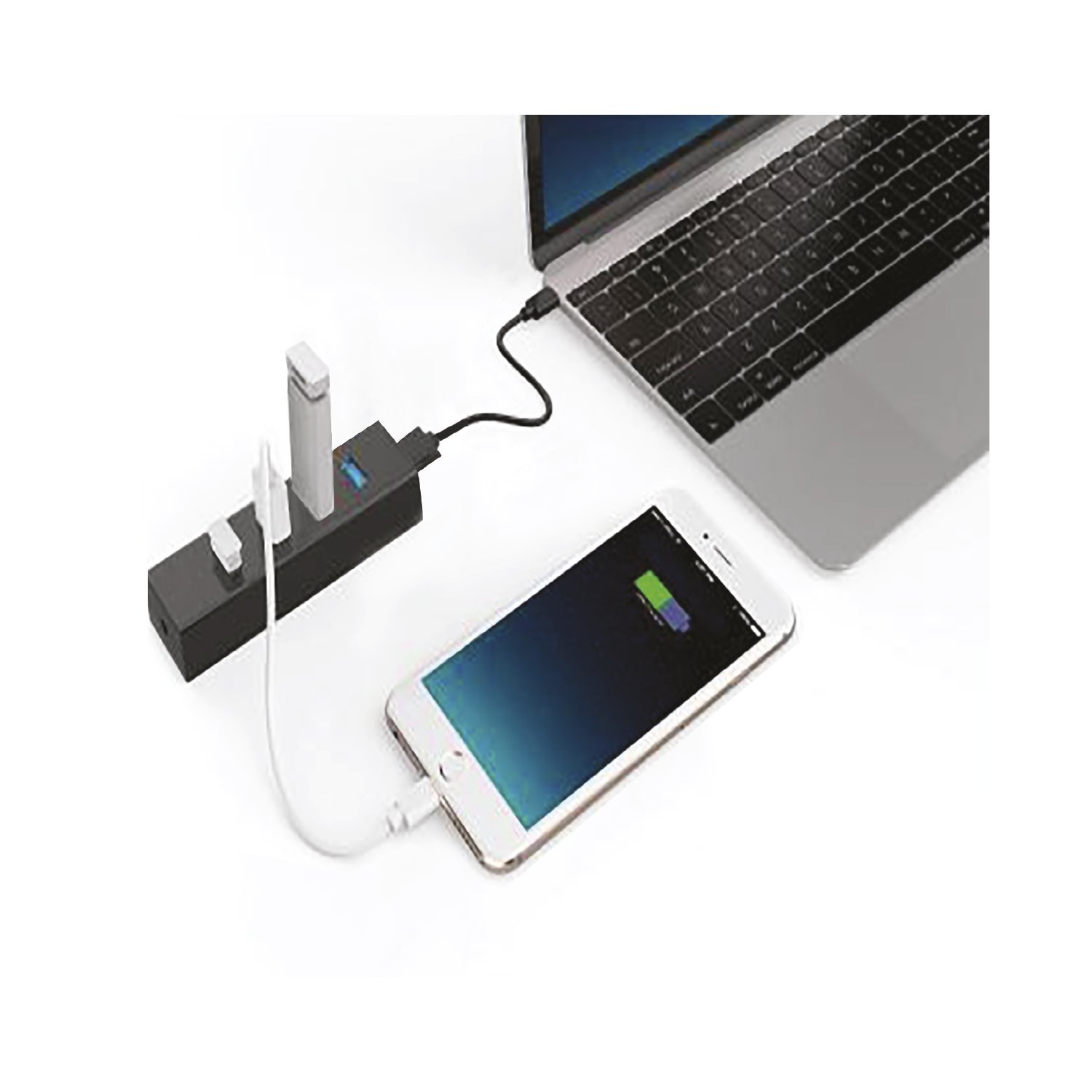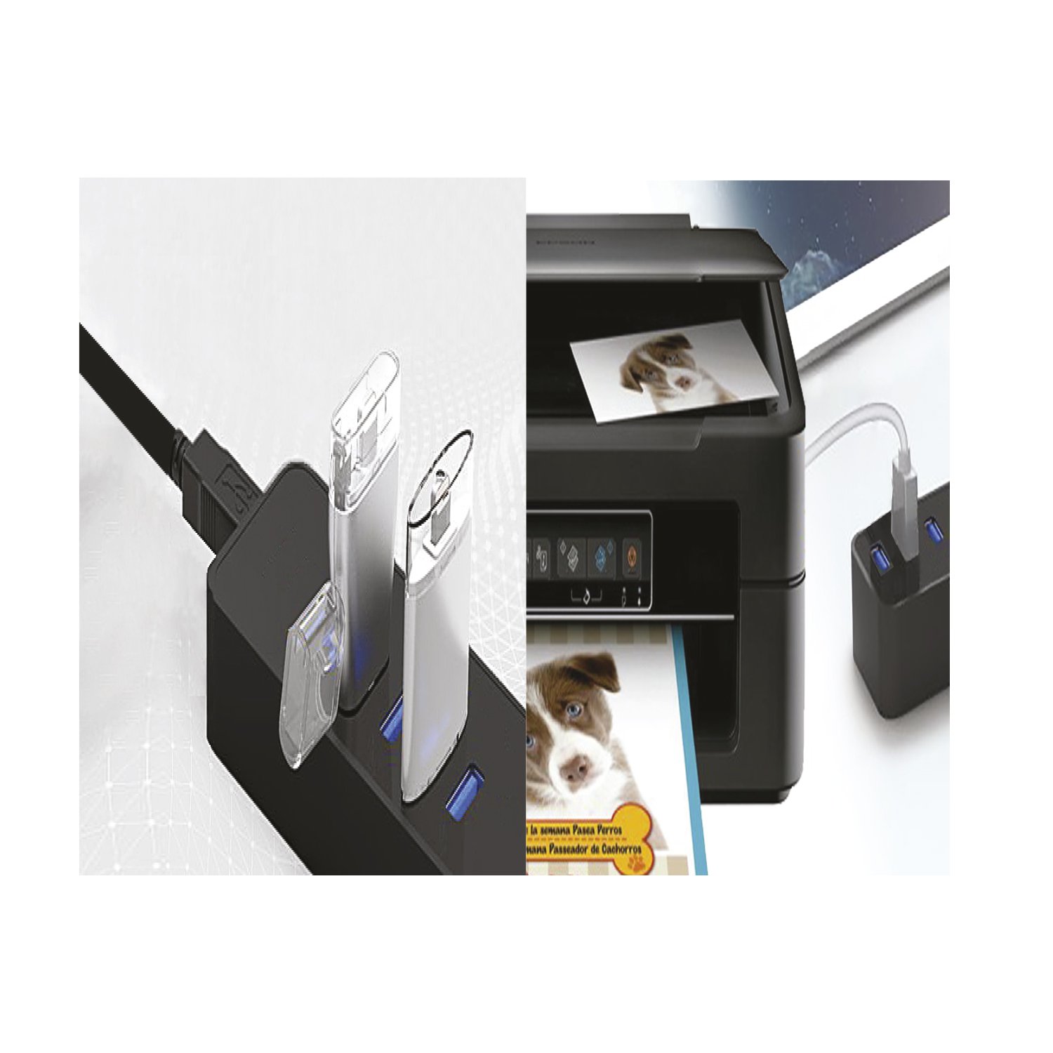 Conecta hasta 4 dispositivos a través de este hub USB 3.0, que ofrece una velocidad de transferencia de hasta 5gbps.