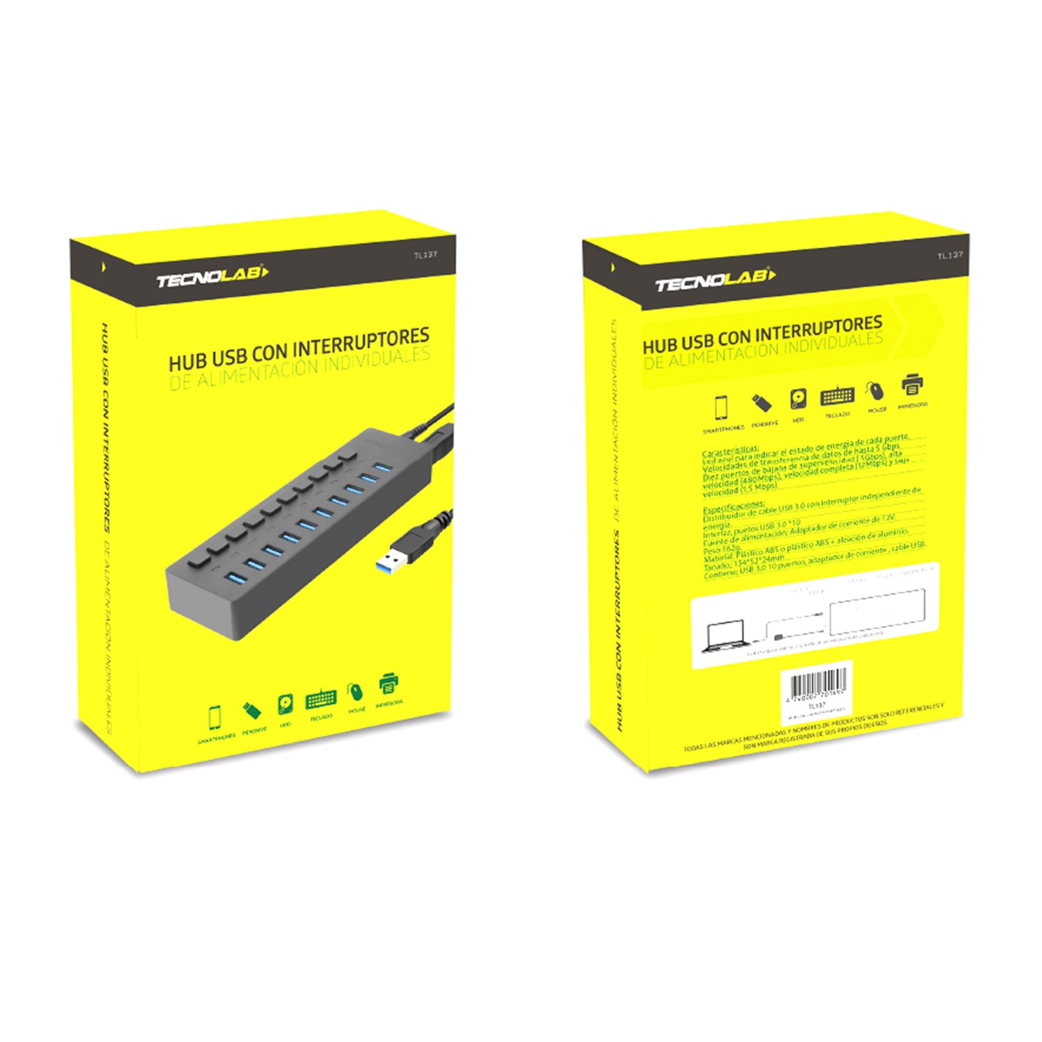 Hub Tecnolab USB 3.0 10 puertos 12V