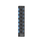 HUB TECNOLAB USB DE 7 PUERTOS, INDICADOR LED AZUL, INTERRUPTOR ON/OFF, USB 3.0, COMPATIBLE USB 1.1, PLUG & PLAY, INCLUYE CABLE PLANO.
