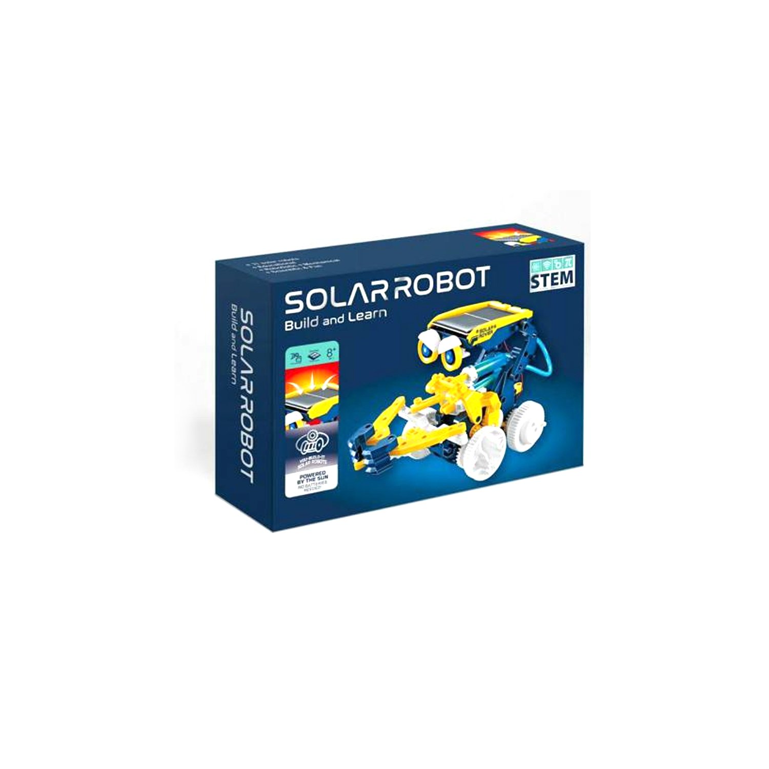 Juguete solar armable con un kit de ensamble de 11 piezas. aprende la ciencia de la energía solar y es ideal para compartir en familia. recomendado para niños mayores de 8 años. contiene piezas pequeñas, mantener fuera del alcance de niños menores de 3 años.
