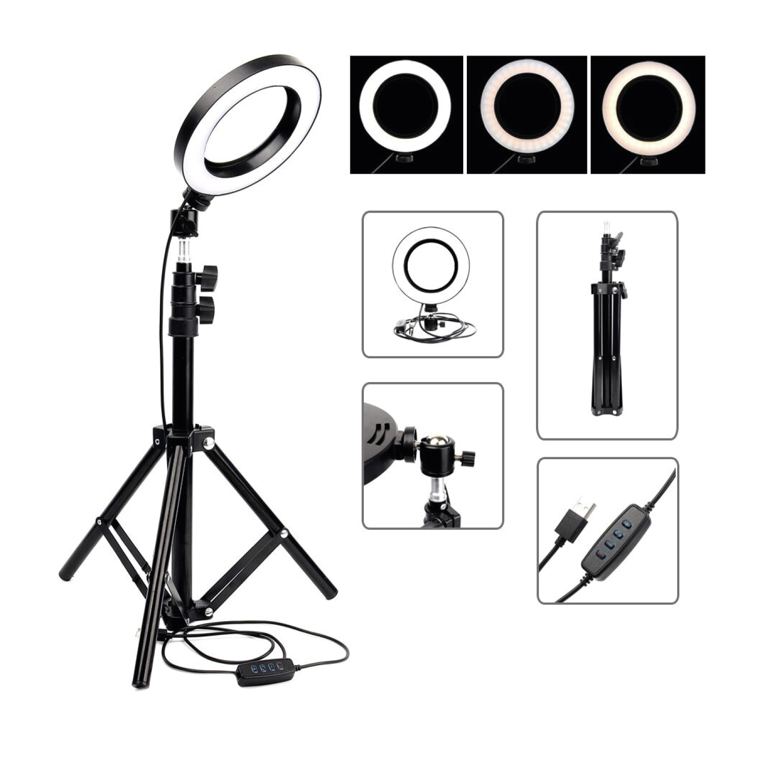 Kit de iluminación LED para streaming con 10 pulgadas, soporte celular y trípode de 1.6 mt.
