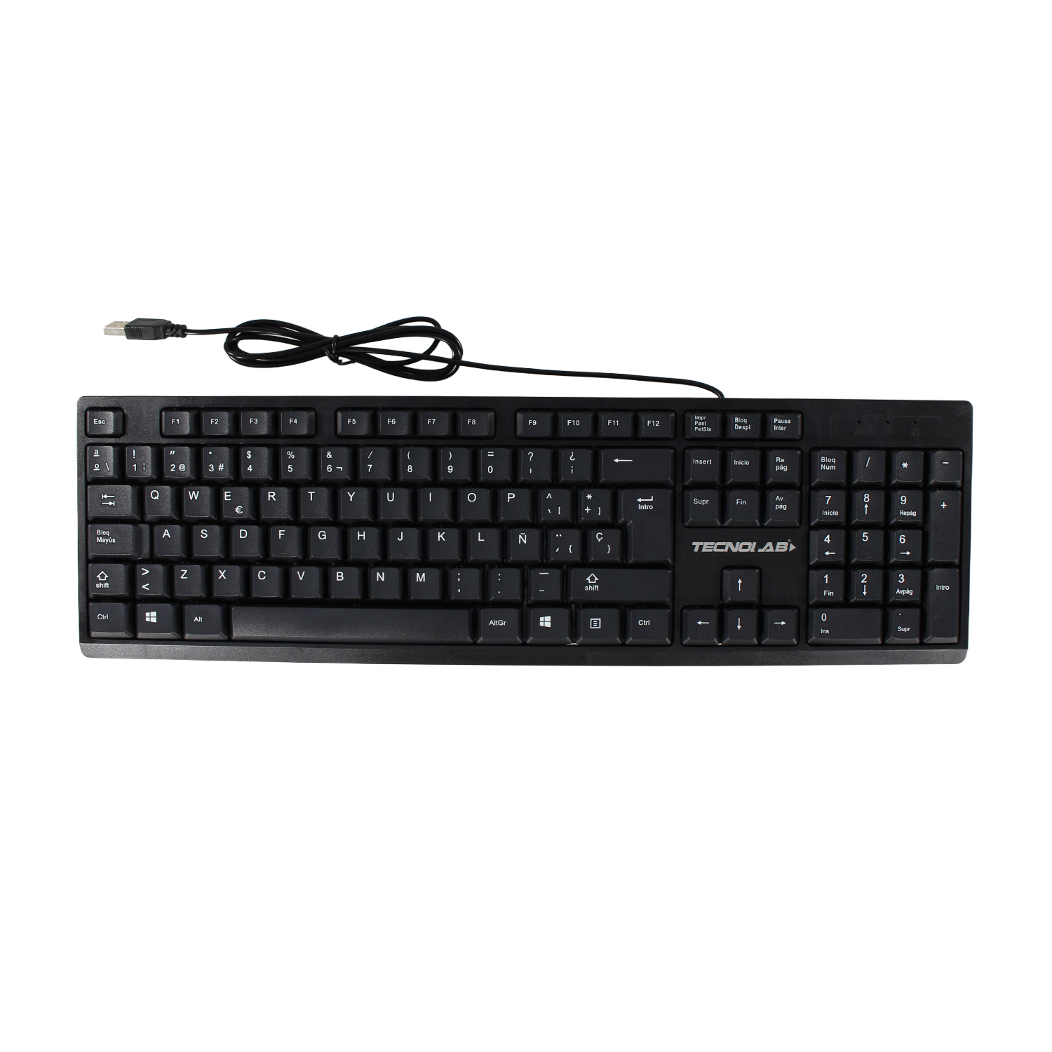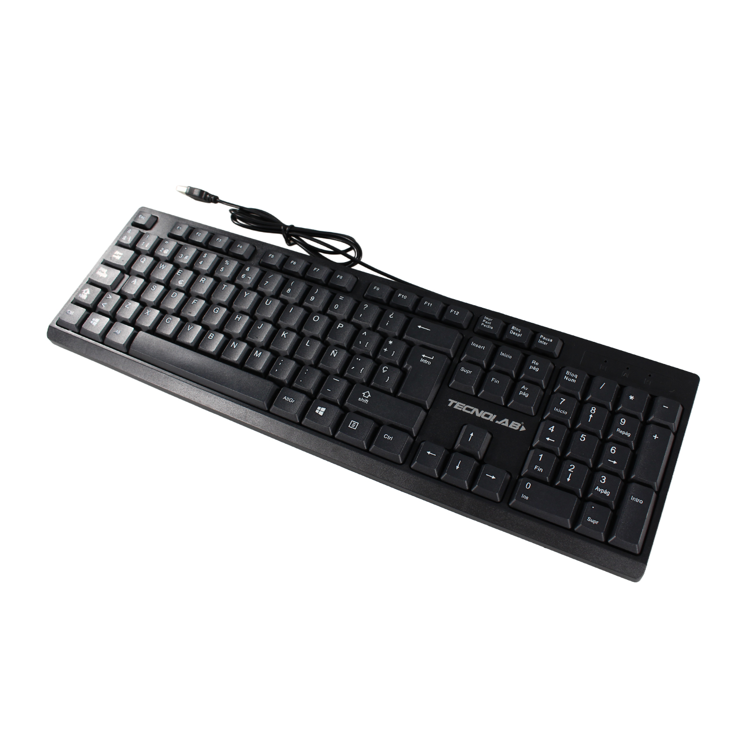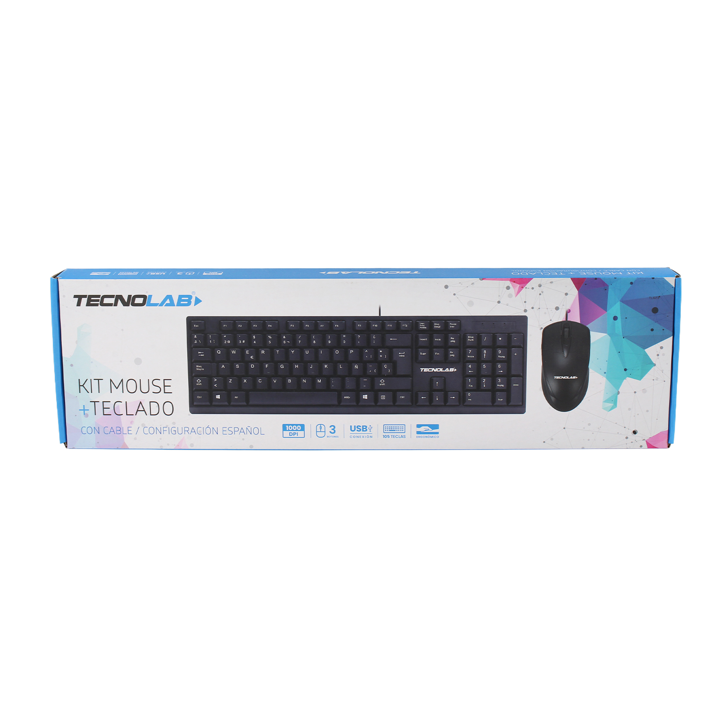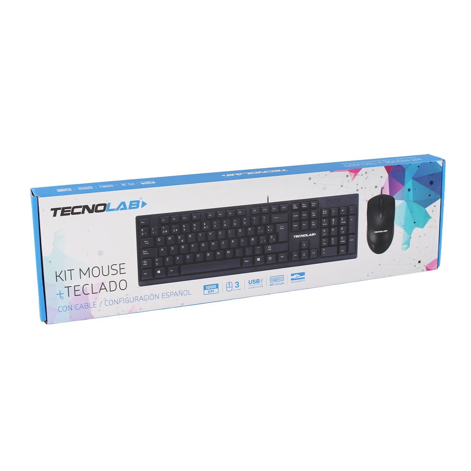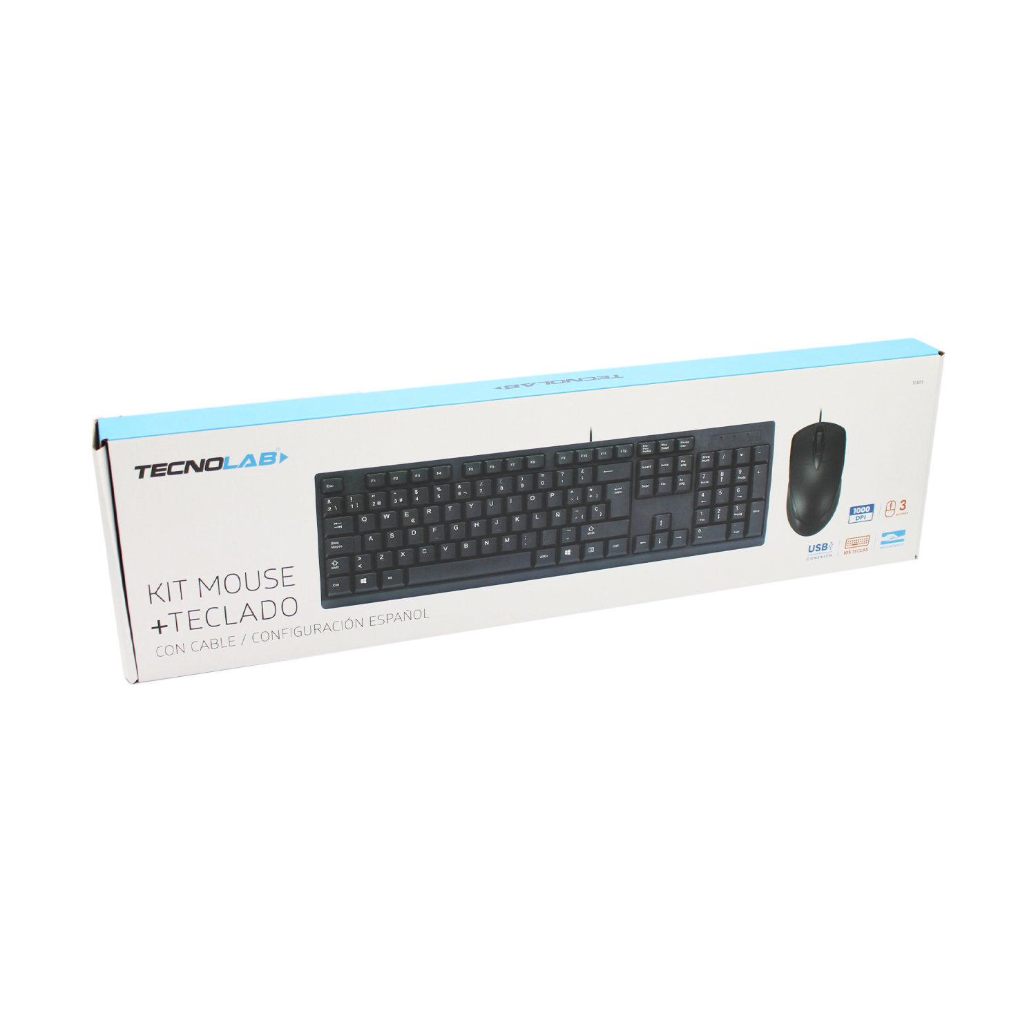 KIT TECLADO MOUSE TECNOLAB ESPAÑOL CON LETRA Ñ, USB 2.0, 105 TECLAS, CABLE 1.35 MTS, MOUSE 1000 DPI
